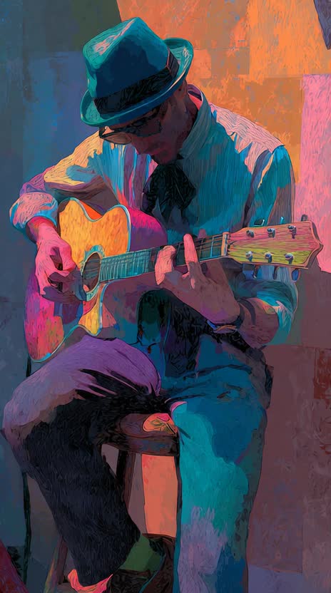 low male voice, syncopated funky acoustic guitar