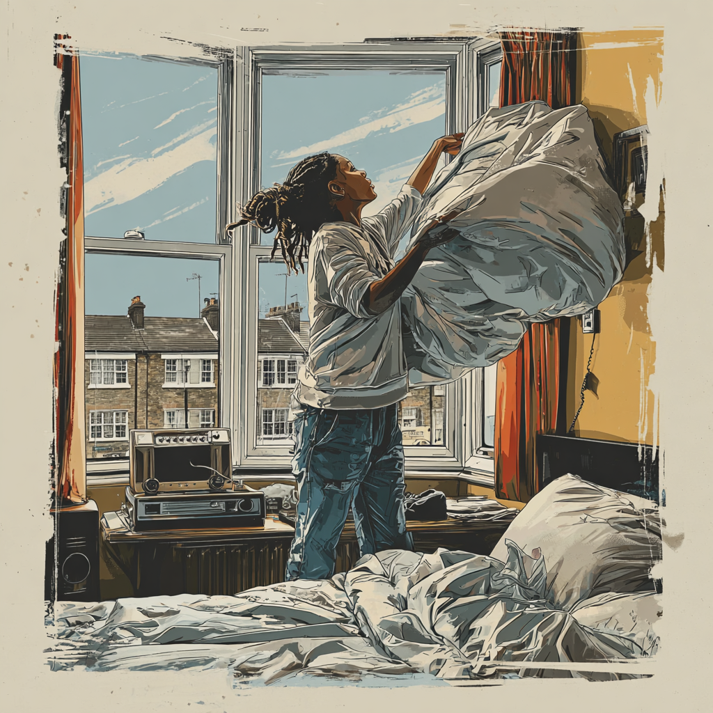 Lo-Fi, Cloud Rap, UK Garage, UK Hip-Hop, Downtempo, Trip-Hop, UK Street Poet, Soul-Gospel, Motown-Soul, Calm spoken-word verses with mantra refrains, each ending in “Have a good weekend… but what it mean, ” Laid-back lo-fi pads, airy trap hi-hats, warm Rhodes chords, and deep sub-bass form the base groove, Gospel Hammond B-3 organ riff with Leslie swirl provides the melodic backbone, rolling chords and soulful flourishes, Joy lifts each chorus with soaring gospel vocals, stacked harmonies, and phantom choir echoes, Bridge breaks into Motown-soul energy with hand-claps, tambourine, and call-and-response chants, Breakdown strips back to organ and sub-bass with single-word refrains (“Market… Plantain… Brixton… Alive…”), resolving into Archie’s close: “Here it’s not just a good weekend, it’s a weekend blessed, ” Vinyl crackle and reverb haze throughout