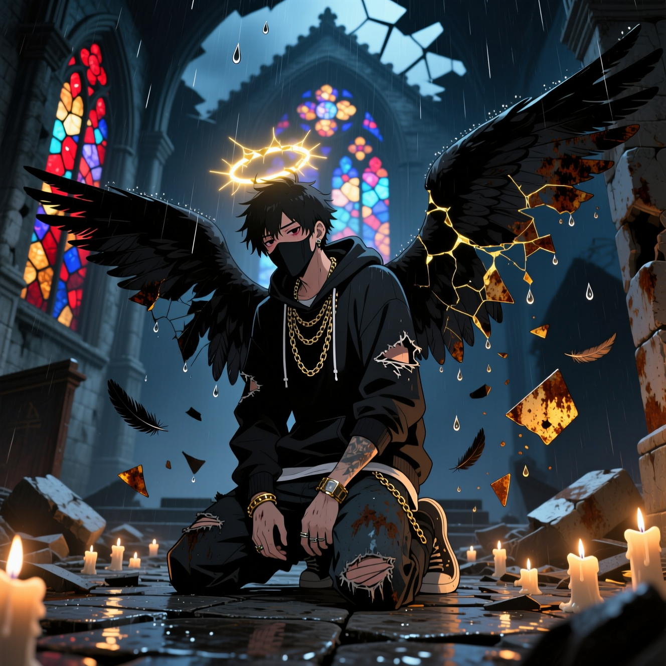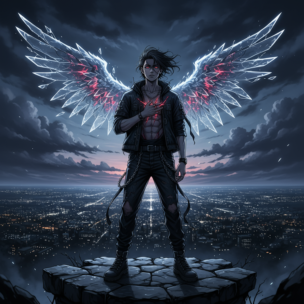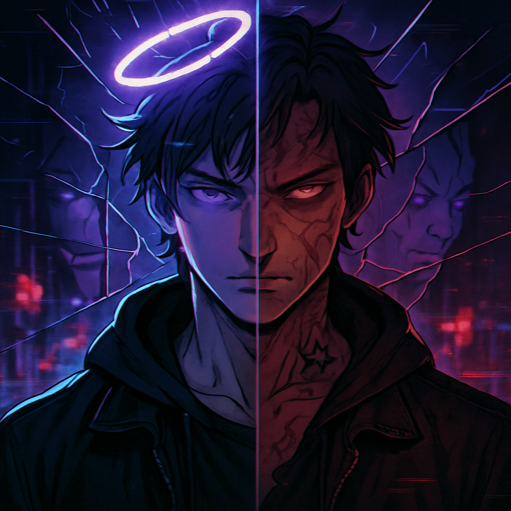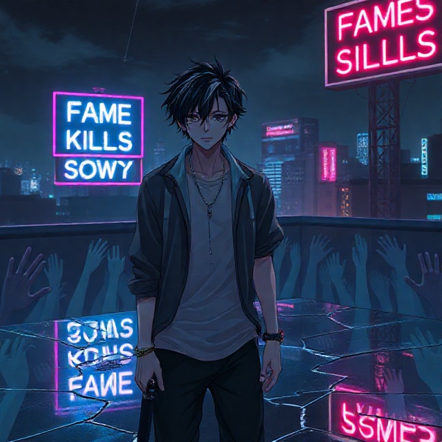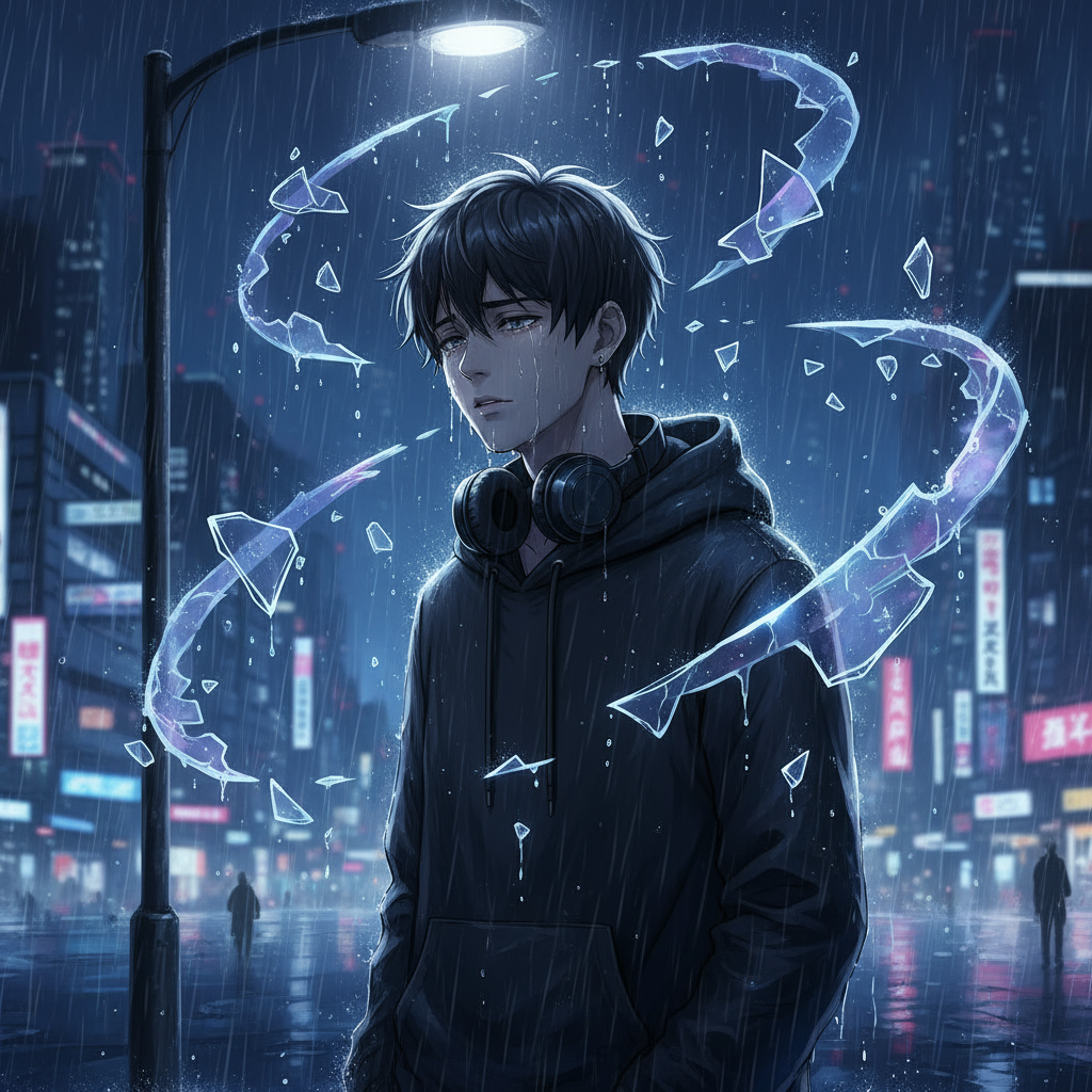 Male Futuristic trap emo rap, 140 BPM, hard 808s, neon synth arps, glitch effects, male autotuned melodic rap with Korean-English lyrics, high-energy yet emotional vibe