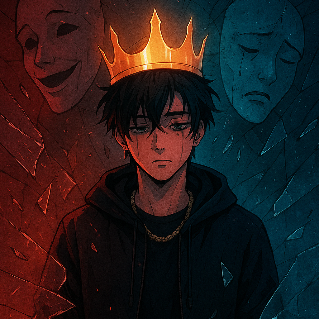 “Korean-English bilingual male emo rap rage trap with dark piano, heavy distorted 808s, raw melodic rap and screams, chaotic emotional energy