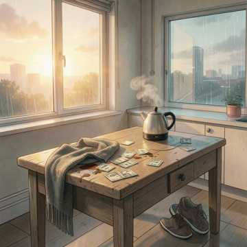 folk, Moody soul-blues pop over warm vintage keys and round, happy kick; intimate male raspy vocal up close with deep, pillowy bass and soft guitar swells in the corners, Verses stay minimal and story-focused, then chorus blooms with smooth, gospel-leaning harmonies and call-and-response ad-libs, Final hook gets a dynamic lift—stacked vocals, wider keys voicings, and a gentle rise in energy, never losing the cozy, humorous warmth, vocal, soul, minimal, happy, r&b, soft, electric, blues, pop, dynamic, emotional, moody, deep, warm, gospel, smooth