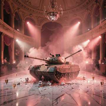 rock, High-energy dance-rock with snarling grunge male vocals; fuzzed-out power chords over a four-on-the-floor kick and gritty synth bass, Verses stay tight and tense with staccato guitar chops and shouted gang responses; chorus explodes with wide-open chords, octave synth leads, and crowd-style backing vocals, Big tom fills and crash swells drive transitions, bridge drops to half-time stomp with distorted vocoder doubles before final chorus hits even harder, musical, grunge, dance rock, strong