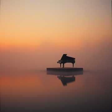 Solo piano in a small, intimate hall; natural room bloom around each note, Start with a fragile, high-register motif built on minor triads and gentle suspensions, letting tones linger into silence, Dynamics breathe in sigh-like swells—subtle crescendos into aching dissonances, then feather-light decrescendos that feel like held-back tears, Midway, widen the harmony with low, rumbling left-hand figures under sparse right-hand suspensions, sustaining a cinematic sadness that ends on a hanging, unresolved sonority, soft, dynamics, emotional, natural