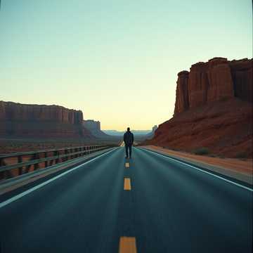 Create a raw, intimate song with acoustic and electric guitar textures, evoking wide-open deserts, red canyons, and long stretches of road under a starry sky, The lyrics should feel heartfelt and reflective, telling the story of a solitary journey, the wind on your face, the dust under your feet, and the quiet beauty of nature, Let the vocals be warm and slightly raspy, conveying both melancholy and hope, The chorus should feel spacious, almost like a horizon unfolding, with each kilometer of the road carrying memories and a sense of moving forward, fragile yet alive