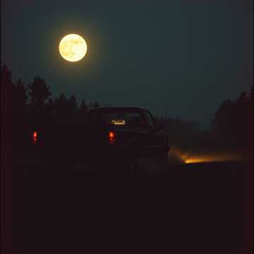 Visual Atmosphere: midnight train, diner neon, storm-lit horizon, feather carried in dust and rain