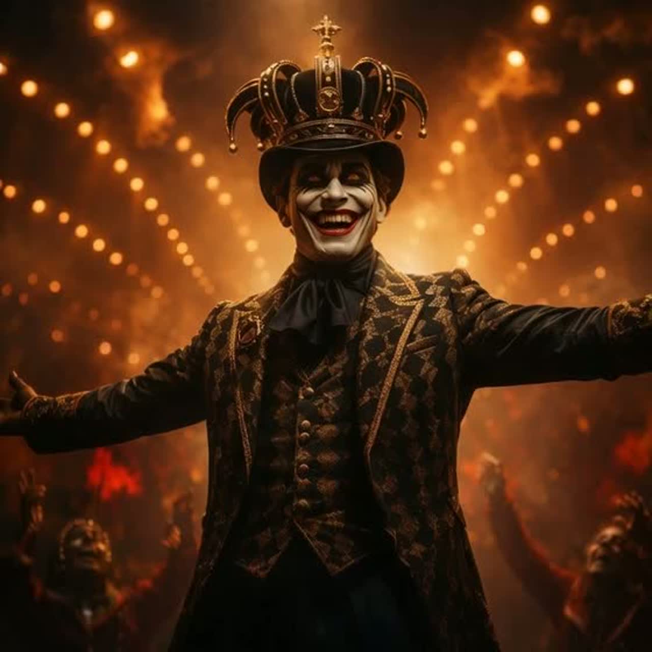 Mood: menace, mockery, spectacle, bloom, crown, replay