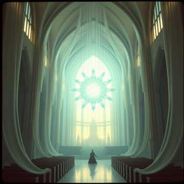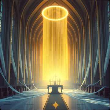 Grand sacred symphonic choir; calm, uplifting, and inspiring; holy and reverent atmosphere; full symphony orchestra with strings, brass, harp, timpani, and pipe organ; large mixed choir (SATB) with clear, soaring voices; slow to moderate tempo; spacious cathedral-like acoustics; gradual build from serene stillness to powerful, glorious grandeur; luminous harmonies; transcendent, comforting, and timeless