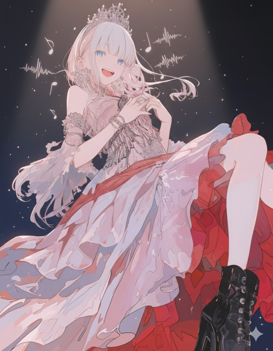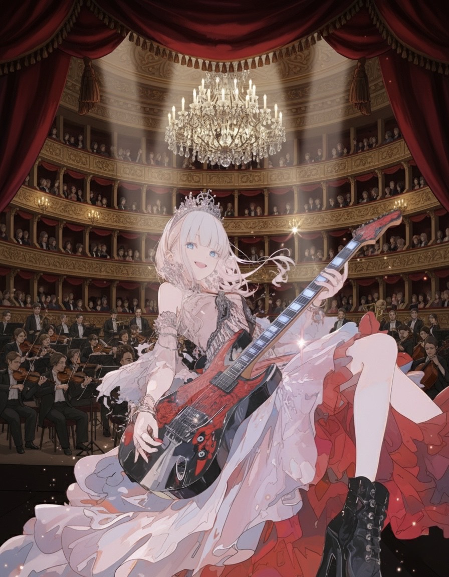 metal, grand symphonic metal with rich orchestral arrangement including strings and brass, cinematic and luxurious atmosphere, highly skilled female vocals with excellent pitch control and soaring high-register singing, elegant yet powerful delivery, controlled high screams at climactic moments, melodic metal guitars blended with dramatic orchestration, theme describing a legendary female vocalist from an outside perspective, without directly naming her title, dramatic, theme, symphonic metal, orchestral, female vocals, rich, soaring
