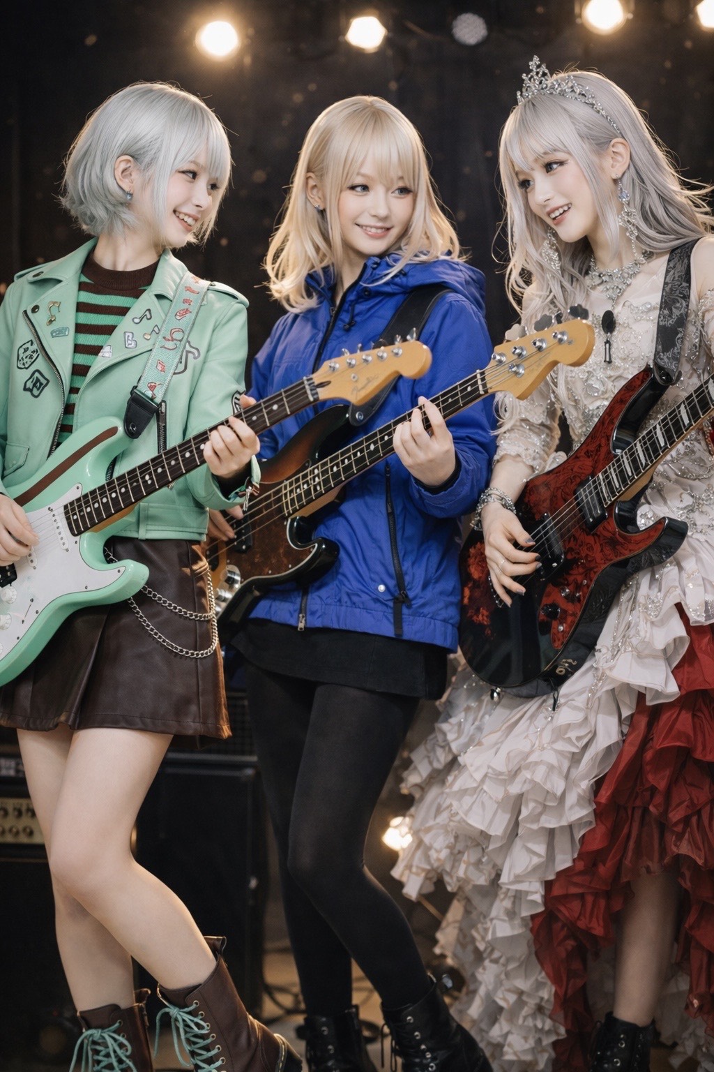 rap, groove-driven light metal, slap bass as main rhythmic hook, funky popping bass lines, bright and pop electric guitar with catchy cutting riffs, sharp light metal lead guitar with fast alternate picking and melodic shredding, three female instrumentalists session, high technical performance, tight rhythm, dynamic build, energetic and cool atmosphere, studio session vibe, modern Japanese band sound, powerful yet playful, instrumental focus, no rap, no growl, electric, metal, rhythmic, light, pop, playful, bright, funky, dynamic