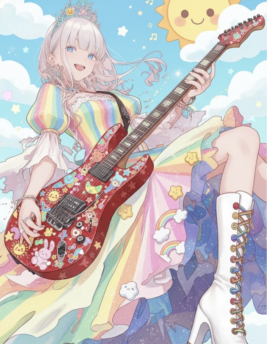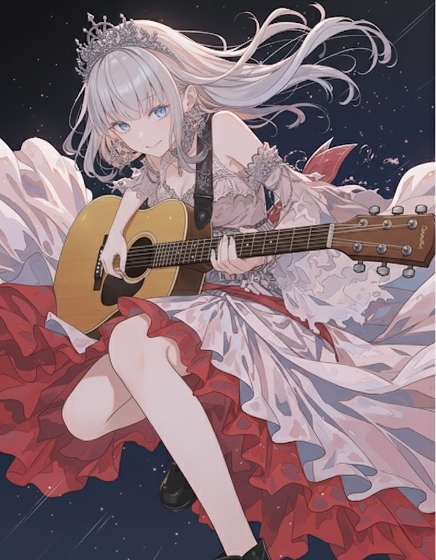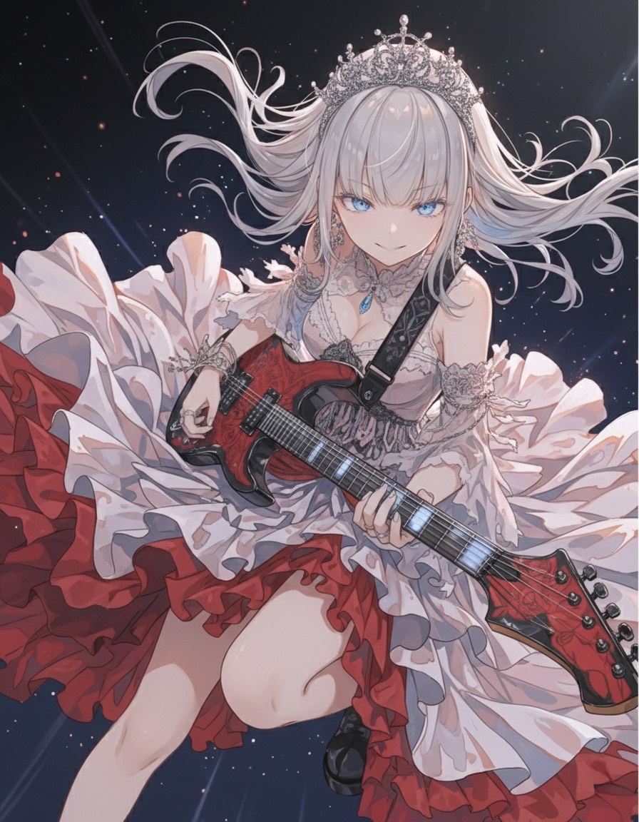metal, melodic light metal, subtle Japanese elements, elegant and emotional atmosphere, high-skill female vocals with excellent pitch control and clear, soaring high-register singing, mostly clean and expressive vocals, one light high scream at the climax, dramatic yet refined tone, bright but slightly melancholic, light, tone, theme, clean, female vocals, bright, refined, emotional, dramatic, soaring