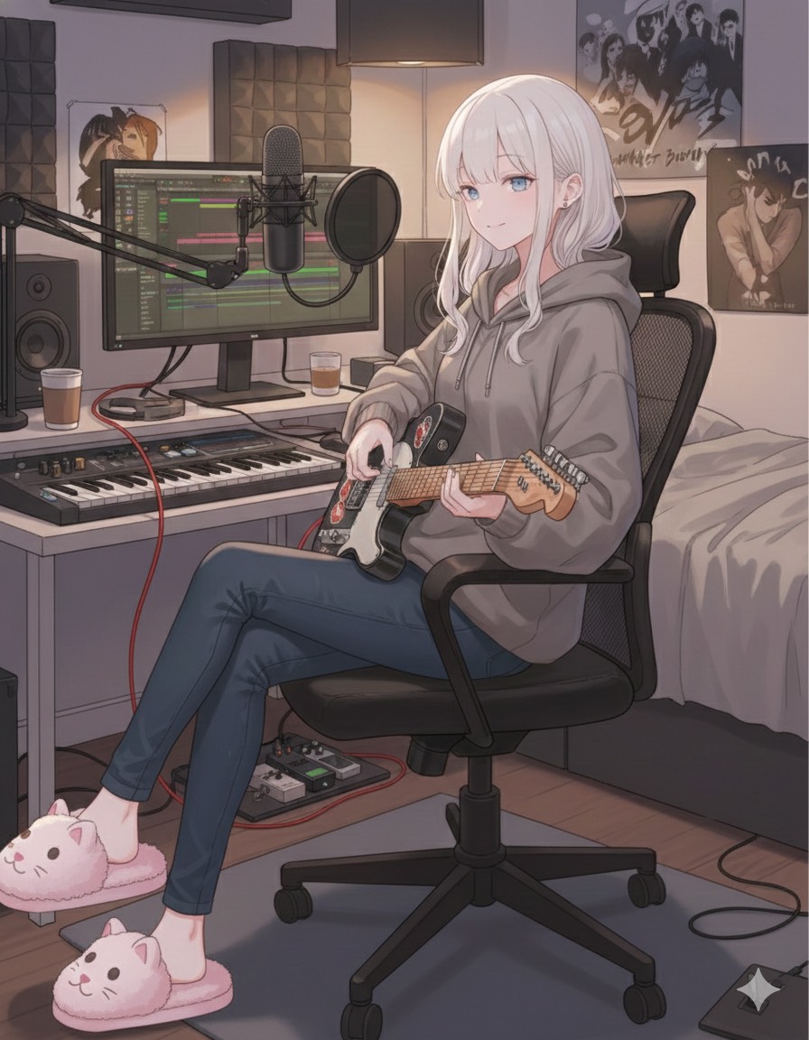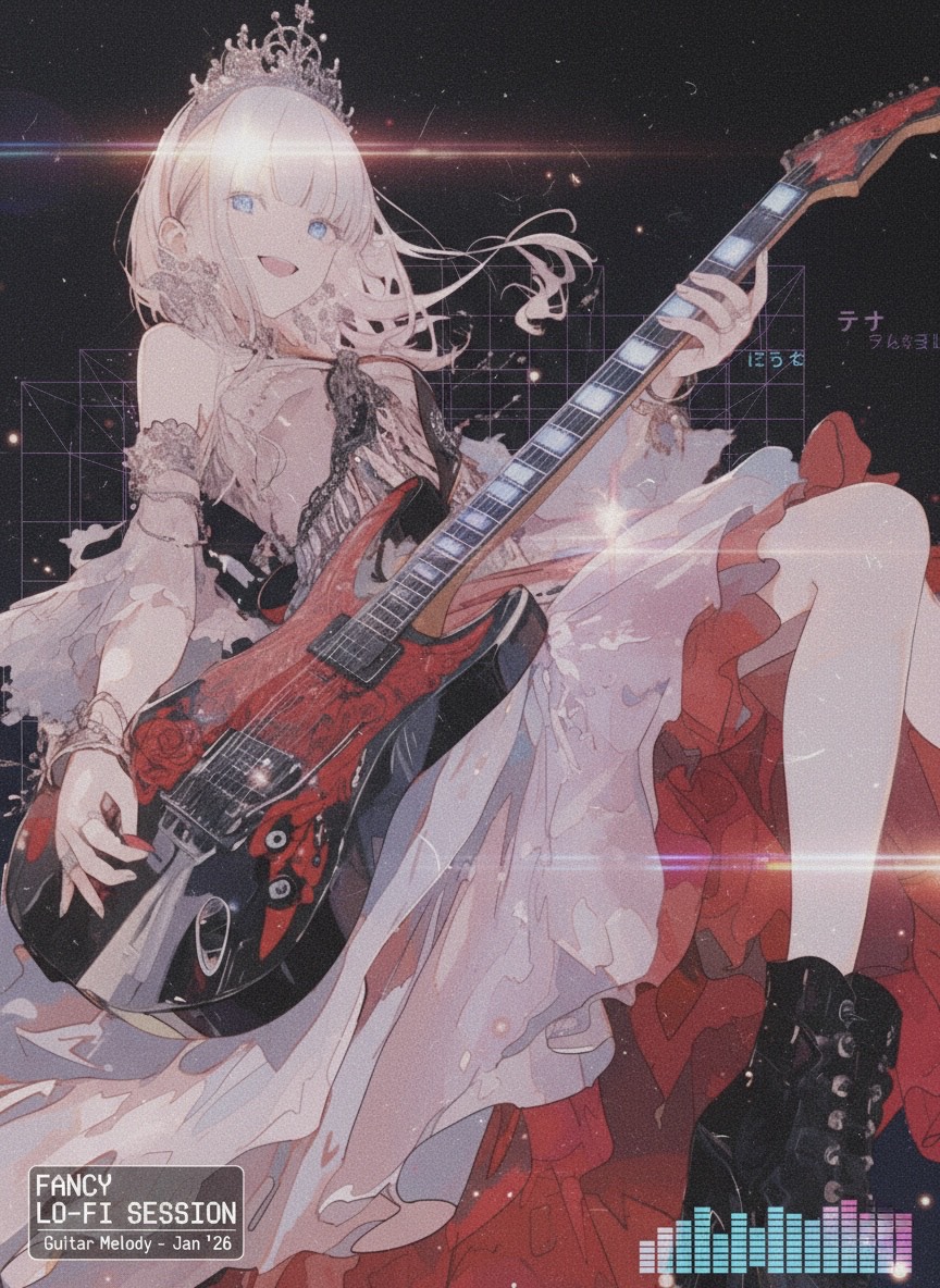 Fancy lo-fi pop track with a soft, dreamy atmosphere, Warm lo-fi textures, gentle synths, muted chords, and simple melodic hooks, Light, cozy sound with subtle tape saturation, vinyl noise, and slightly imperfect timing, No aggressive drums; beats are soft, minimal, and relaxed, Cute, playful, and pastel-like mood, mixing pop catchiness with lo-fi calmness, Melodies feel innocent and nostalgic, with a floating, daydream-like quality, Overall sound is charming, mellow, and intimate, designed to feel comforting and stylish rather than energetic or loud