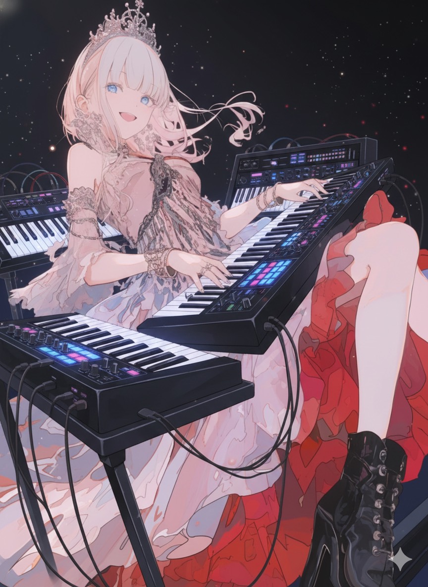 Cheap MIDI-style electronic pop track with intentionally low-quality, General MIDI–like sound palette, Thin synth leads, plastic-sounding bass, basic organ and brass presets, simple drum machine tones, and flat, obvious MIDI timing, No realistic instruments, no modern polish—deliberately cheap, artificial, and retro, High-spec female vocalist with excellent pitch control and wide range, Despite the cheap MIDI backing, vocals are clean, confident, and expressive, creating a strong contrast between high-quality singing and low-fi instrumental sound, Clear melody delivery with pop sensibility, slightly playful and ironic tone, Light, quirky, and nostalgic atmosphere, evoking old PC music software, early internet culture, and demo MIDI songs, Catchy, simple melodies with humorous charm, where the vocal performance elevates the intentionally crude instrumental backing