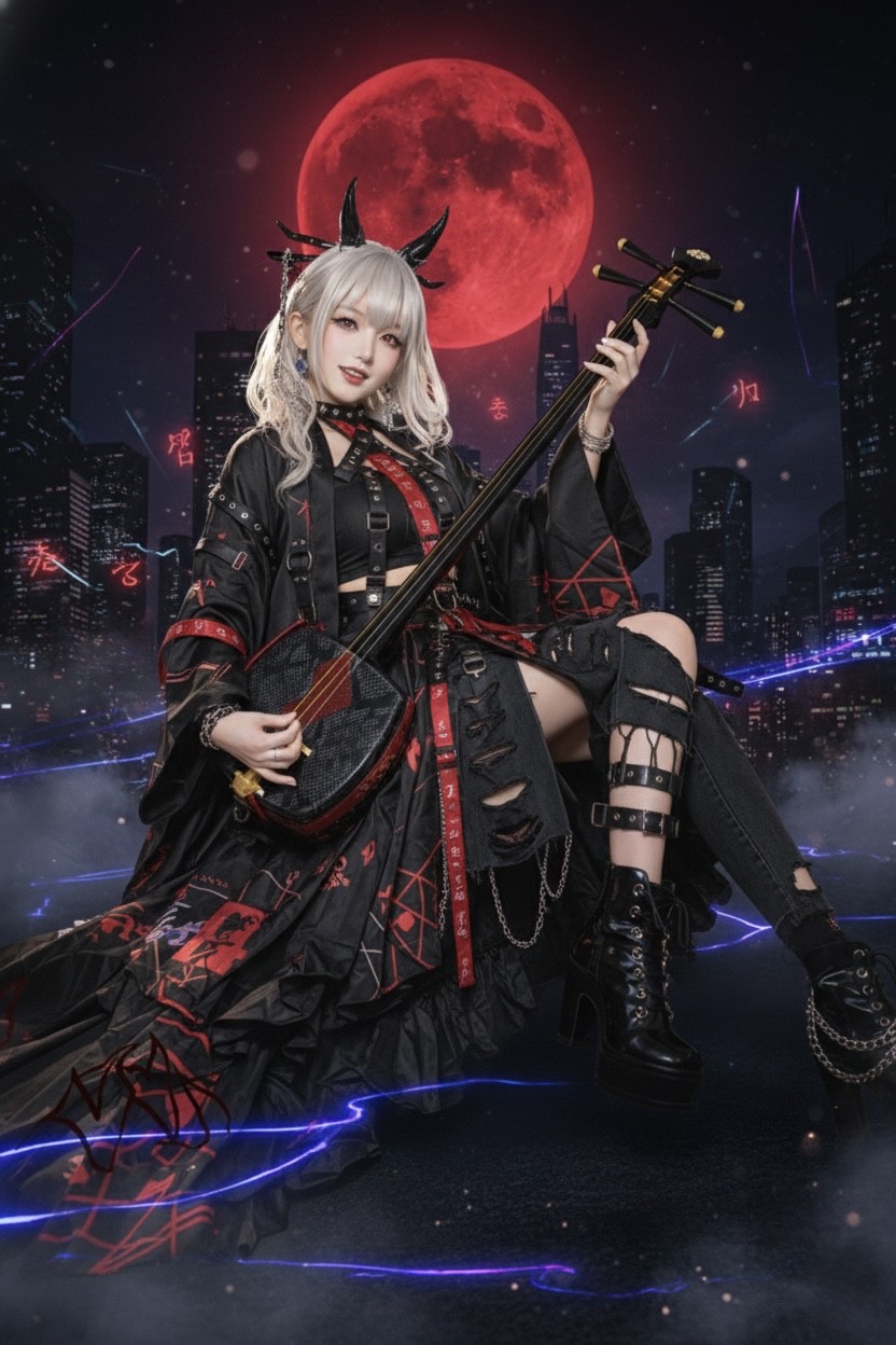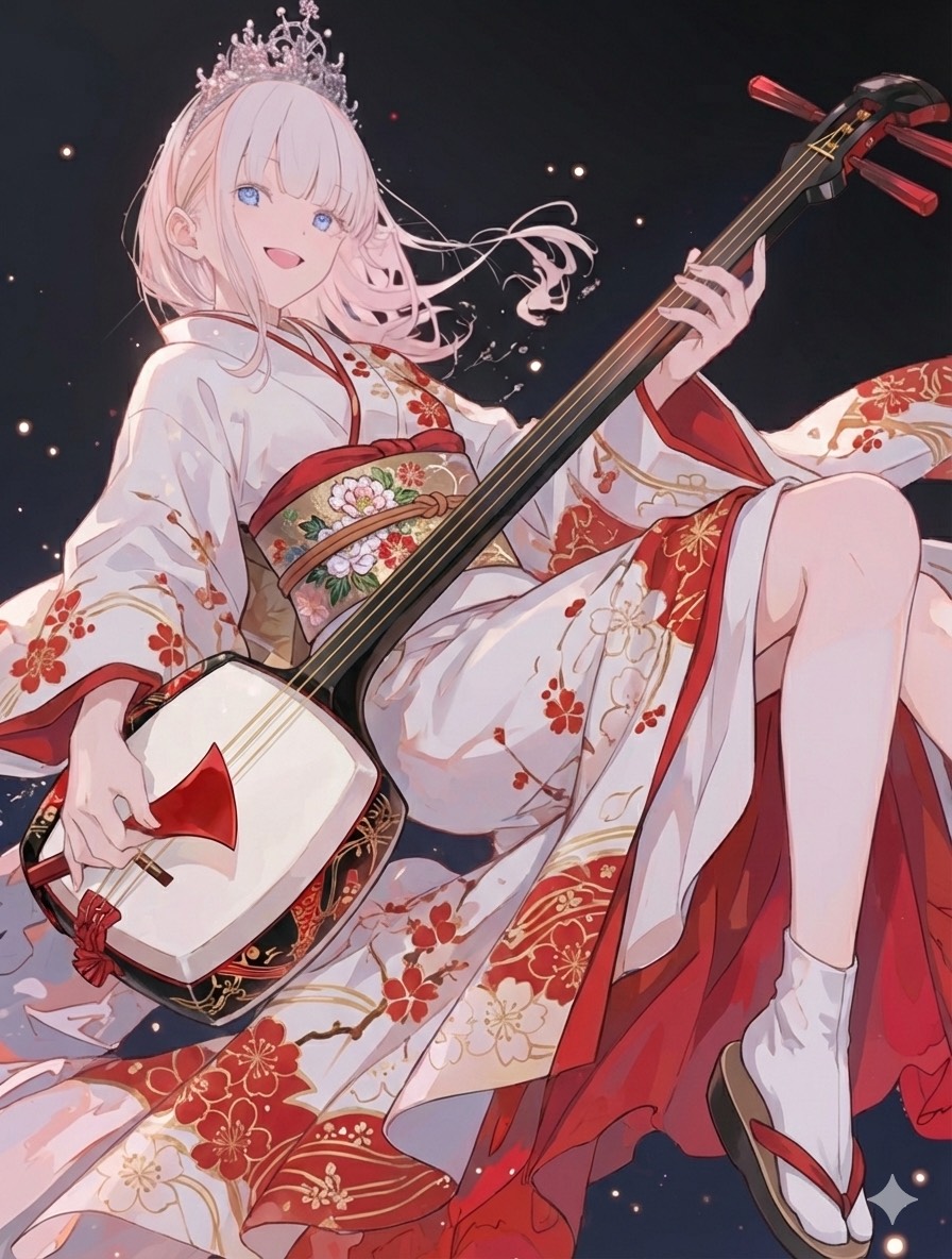 Tsugaru shamisen solo performance with vocal, No other instruments, Powerful and percussive Tsugaru shamisen playing featuring fast picking, aggressive strikes, dynamic accents, and expressive pauses, Strong rhythmic drive with traditional Tsugaru-style intensity, yet arranged as a vocal-focused song rather than instrumental, High-spec female vocal with wide range and excellent control, combining clear emotional delivery with strong projection, Vocal and shamisen closely intertwined, intimate and raw, emphasizing human breath, string attack, and live performance energy, Minimal effects, organic sound, dramatic and honest, modern yet deeply rooted in Japanese tradition