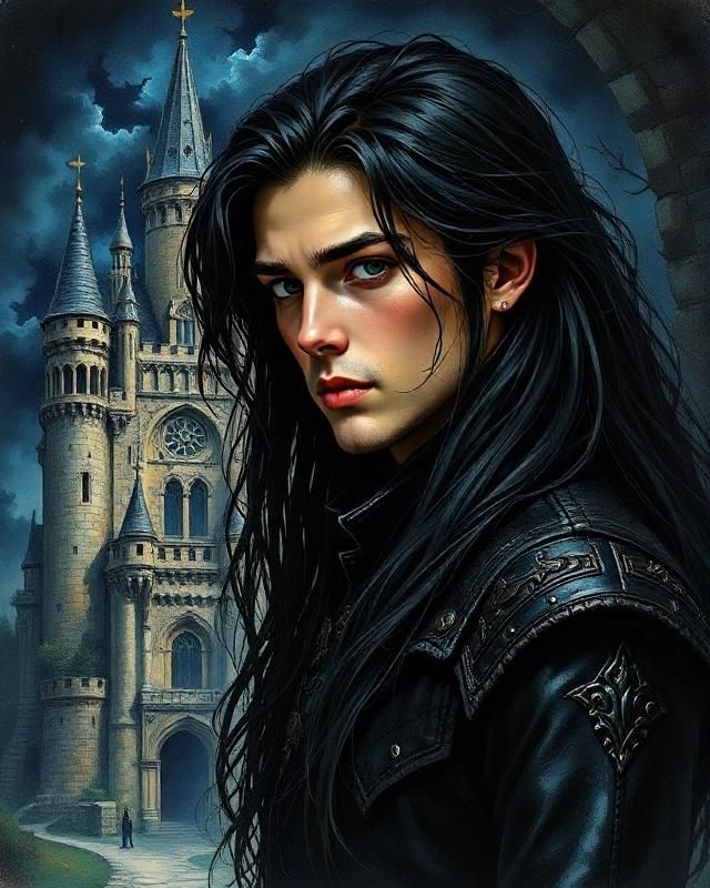 Gothic, fantasy, hero, bard, orchester, angelic choir, hymn, epic, soulful male vocals, historical, occult