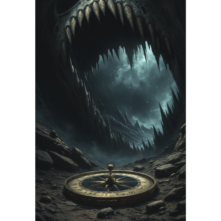 Adventure meets creeping doom, Musical themes: stepwise, hesitant lead with frequent eighth-rest gaps to mimic cave echo; phrase-ending chromatic descents; call-and-response between pulse-lead and whisper choir; sudden drop-outs to near-silence, Mood: claustrophobic, suspended, and unnervingly unresolved
