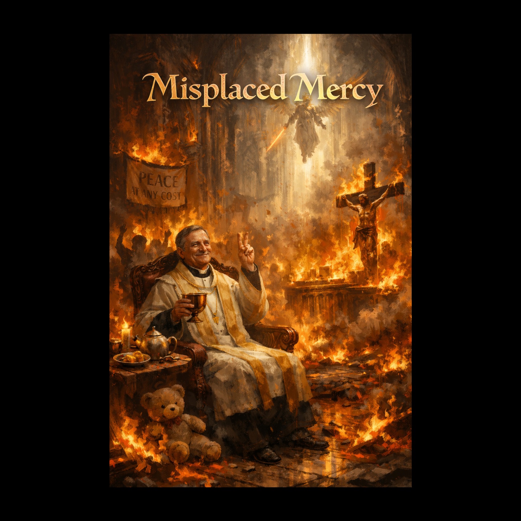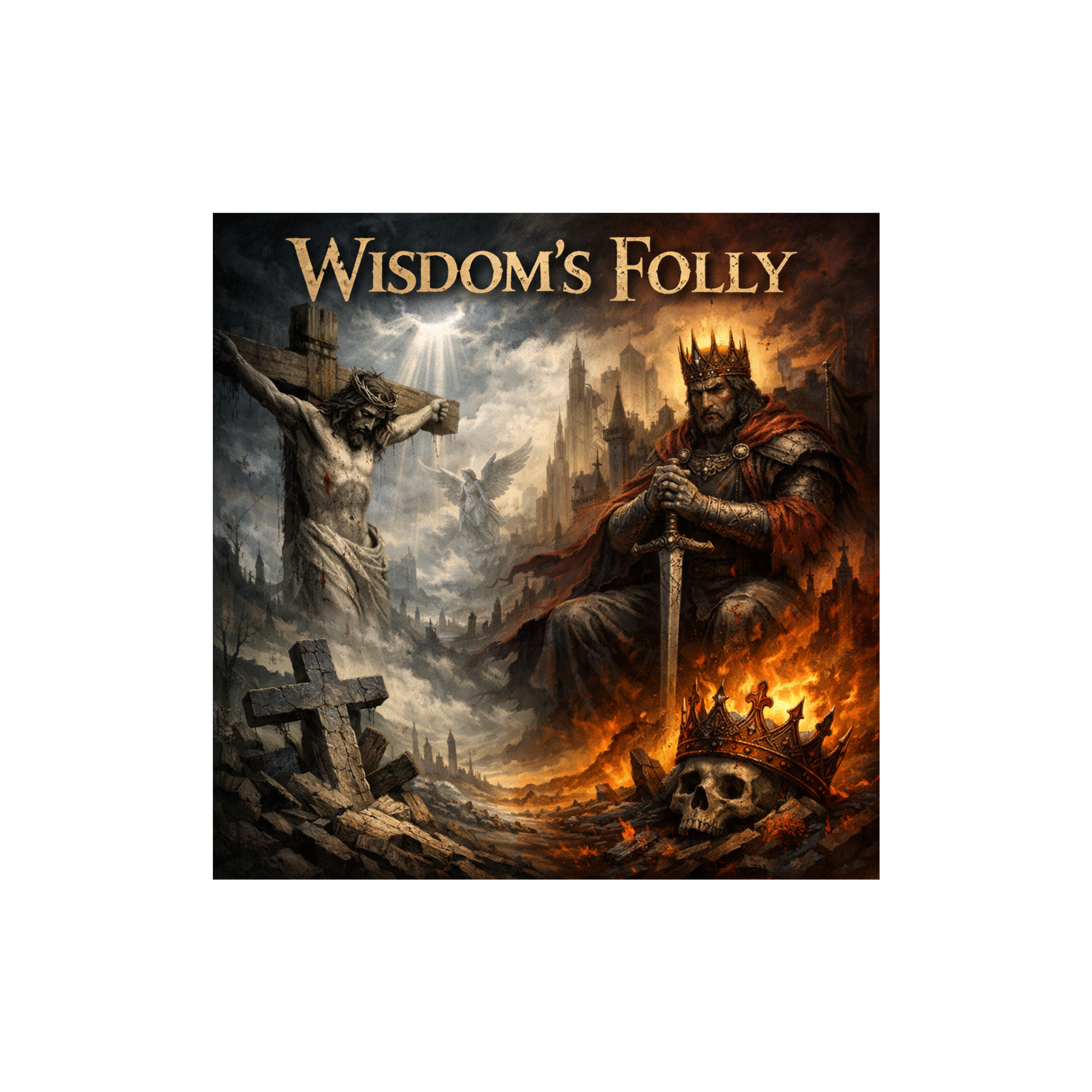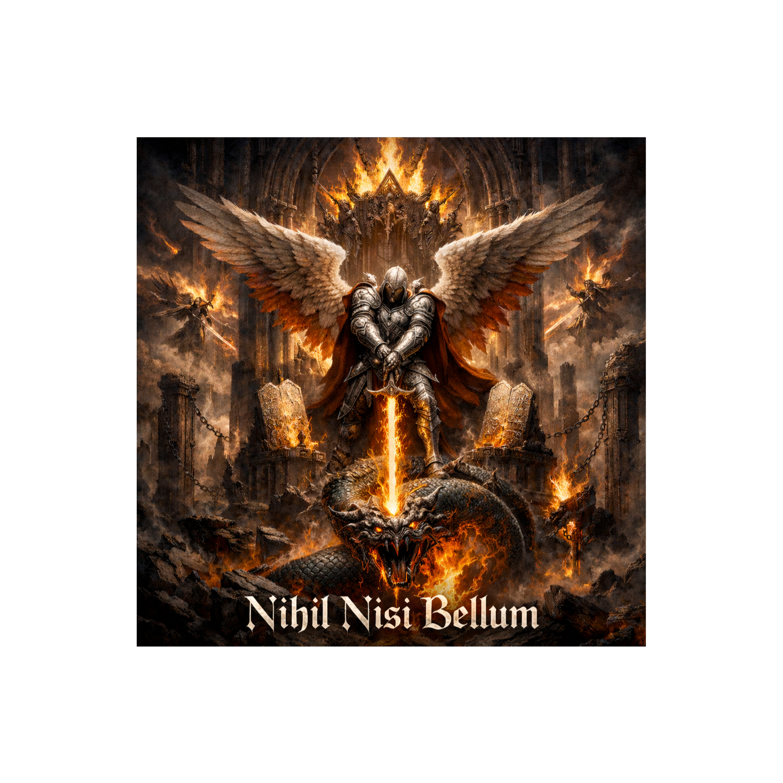 Epic Viking metal rises with downtuned guitars and thunderous double kicks at 126 BPM, layered with analog synth drones and cathedral-scale orchestration, Choral and operatic voices meet haunting strings and massive war drums, while deep chanting builds tension, The metalcore energy drives a tragic, defiant march, fusing sacred grandeur with brutal intensity for a cinematic, battle-scarred soundscape