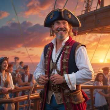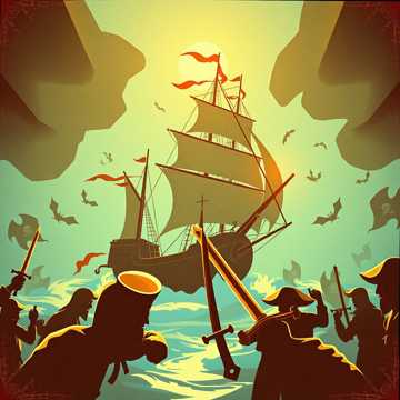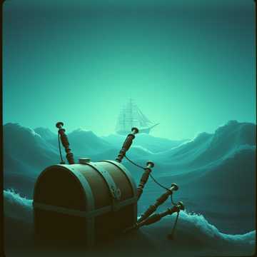 This pirate metal track bursts in with galloping guitar riffs, thunderous drums, and rollicking accordion, Male vocals deliver exaggerated melodies over raucous gang shouts, The chorus explodes with symphonic brass and choir, all layered atop driving bass for a bombastic, playful epic