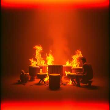 hypnotic rhythm, vocal, afro-fusion, melodic rap, heavy percussion, 105 bpm, rap, hypnotic, gritty male vocal