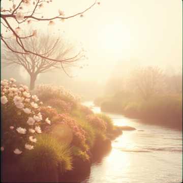 birdsong, divine and flowing, gentle, gentle hums and “ah”s, soul, ethereal, warm soulful female vocals with airy neo-soul tone, female vocals, tone, soulful, crystal bowls, harp, harp and guitar lead, warm, peaceful sunrise textures, ambient