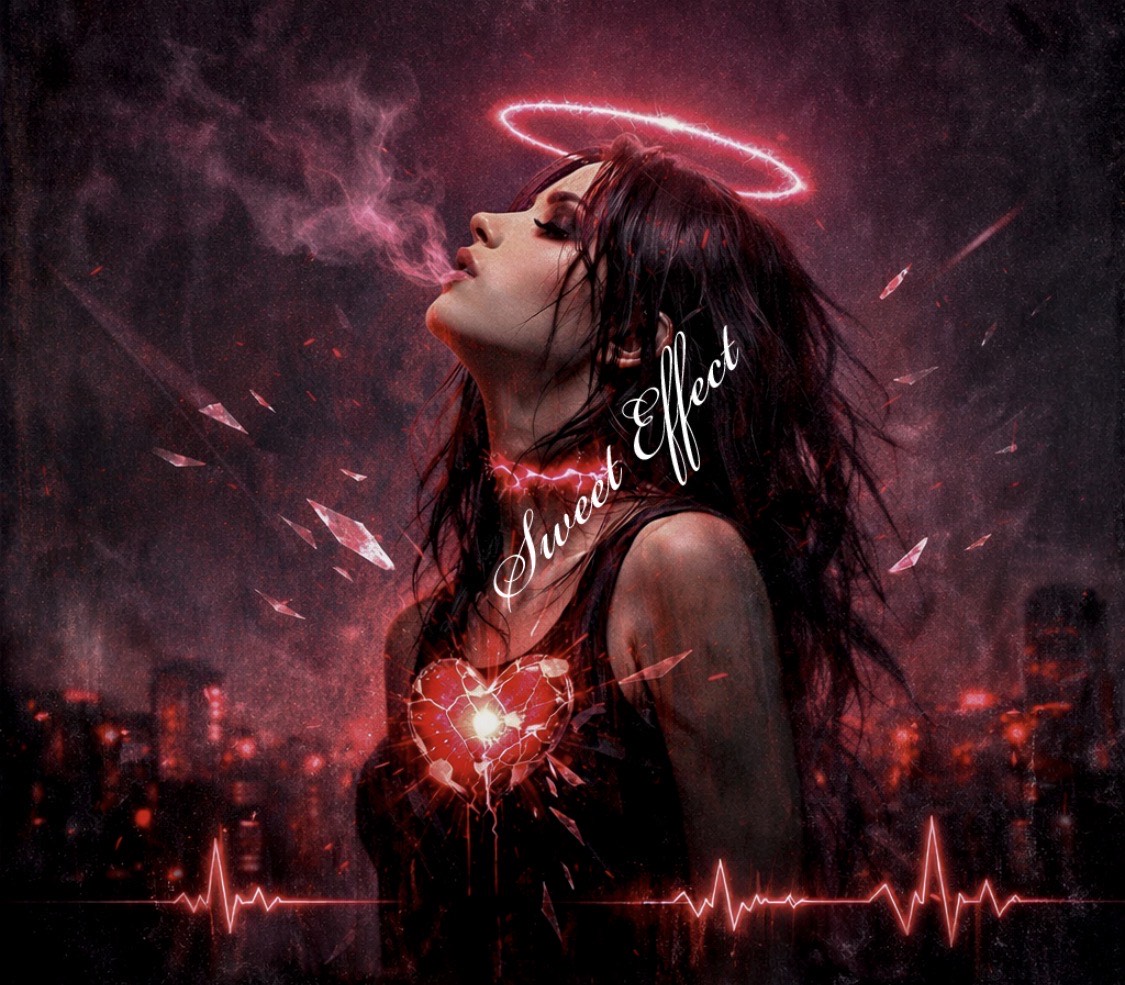 Female vocal nu metal, very breathy and intimate vocals with audible breathing, close-mic whispers and soft moans used rhythmically, groovy downtuned nu metal riffs (drop C or lower), thick bass and hip-hop influenced drums, tempo 95–105 BPM in main sections, song structure builds tension gradually, at the climax all instruments and vocals stop completely for about 1 second (full silence), no reverb tail, no effects during the silence, after the silence the song resumes in a slow tempo outro (60–70 BPM), minimal instrumentation, clean or ambient guitar, breathing and short emotional vocal phrases only, sensual, instinct-driven, ecstatic atmosphere, focus on physical sensation, rhythm, and loss of control, dark, erotic, modern nu metal with strong contrast and tension