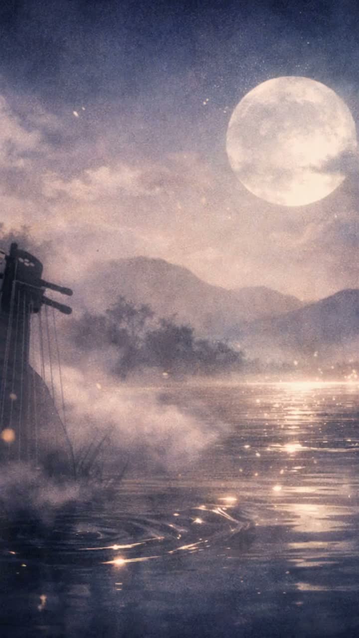 Instrumental ambient electronica, slow tempo (BPM 70–90), Intro: realistic water drop sounds (suikinkutsu), no vocals, Kalimba echoes like droplets, blending with deep reverb, Verses: shakuhachi plays soft breathy phrases, evoking wind and dragon’s presence, Chorus: pads and shō sustain harmonies, portraying ripples across the lake, Instrumental section: kalimba and shakuhachi weave together, expanding the ambient space, Outro: water drops return, fading into silence