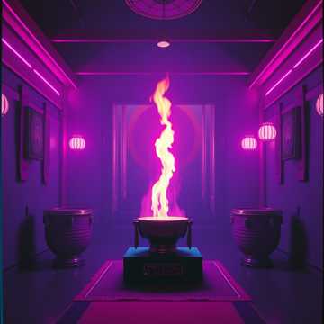 6-minutes track dark Phonk hip-hop influenced, funky, rhythmic flow, funky bassline catchy riff, vibrant, distorted synth stabs and dark rolling sequences, intense tribal percussion, Throat voices, deep ritual chant-style vocal, low male voice, sounding like a sacred temple invocation, short repeated phrases used as rhythmic accents, one big breakdown with huge reverb-soaked chant and pad, then explosive final drop, compact 6-minute structure for maximum festival impact