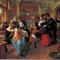 Then Estampie(intense, energetic, lively, 4beat fast BPM=180-200) is played by [Medieval Ensemble] only, This lasts about 1min, After 1min, [20th Ensemble] is join and plays Estampie, same tune to [Medieval Ensemble] with modern harmony and orchestration, After it lasts about 2min, Music end, [Medieval ensemble]