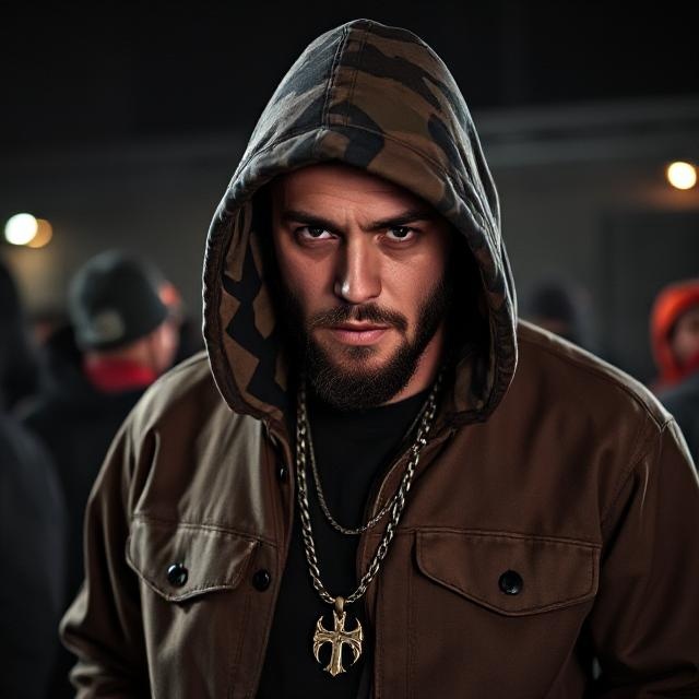 Driven by a classic Deutschrap beat, hard-hitting drum grooves and crisp syncopated hi-hats establish the energy, Tense, cinematic strings persist, while brass bursts highlight the buildups, Fluid rap verses morph in flow over modern production before launching into a soaring, melodic hook, ‑autotune
