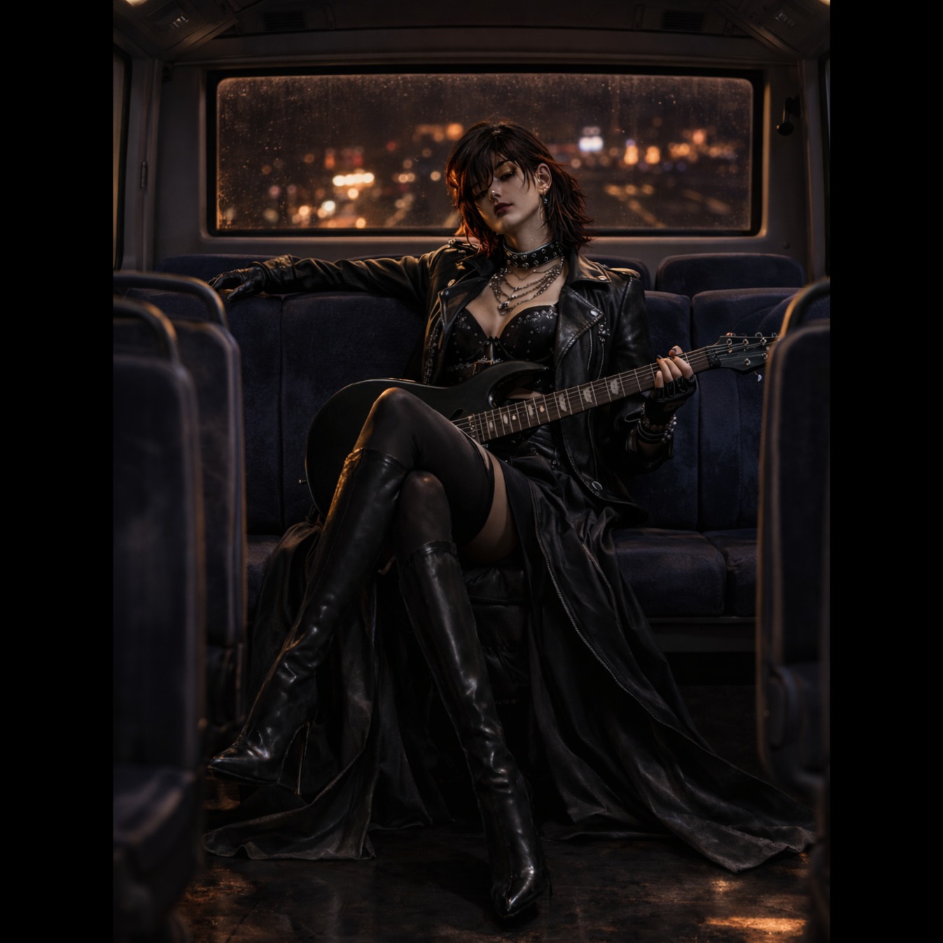 EDM punk fusion with distorted guitars, fast four-on-the-floor kick drums, glitchy synths, aggressive basslines, shouted vocals, and rebellious energy, High BPM, laser stabs, breakdowns with punk grit and electronic chaos, Anthemic, raw, and built for riotous dance floors