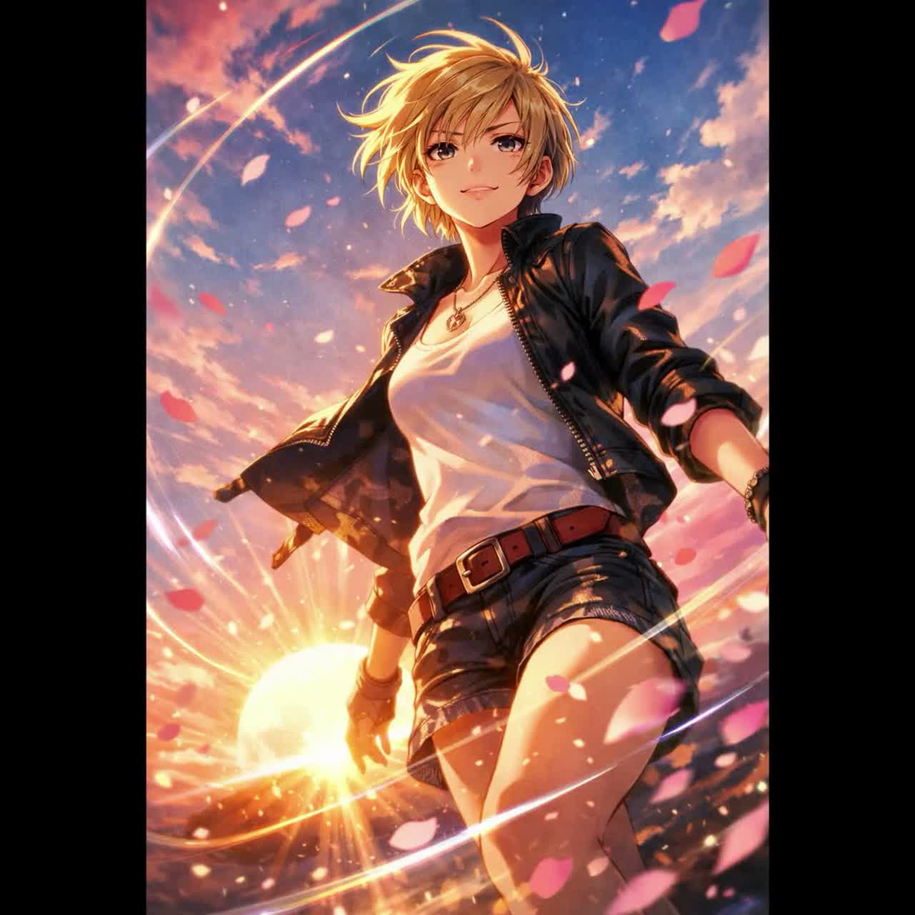 The song starts with clean, melodic guitar and glossy synth pads, soon kicking into a verse groove with crisp drum samples and driving, syncopated bass in K-pop/J-rock fashion, Pre-chorus tension mounts with stacked harmonies and modulated guitars, then bursts into a bold, anthemic chorus: overdrive guitars, wide stadium claps, and big, reverb-laden vocals infused with sparkling arpeggiators and rapid-fire J-pop chants, The bridge pares back to acoustic guitar, lush vocal stacks, and subtle electronic accents, surging into a super-charged final chorus with gang vocals, panoramic guitar layers, and electric synth leads, balancing edgy pop rock with polished J/K-pop dynamics