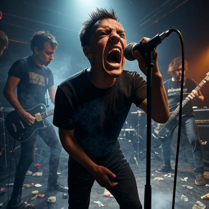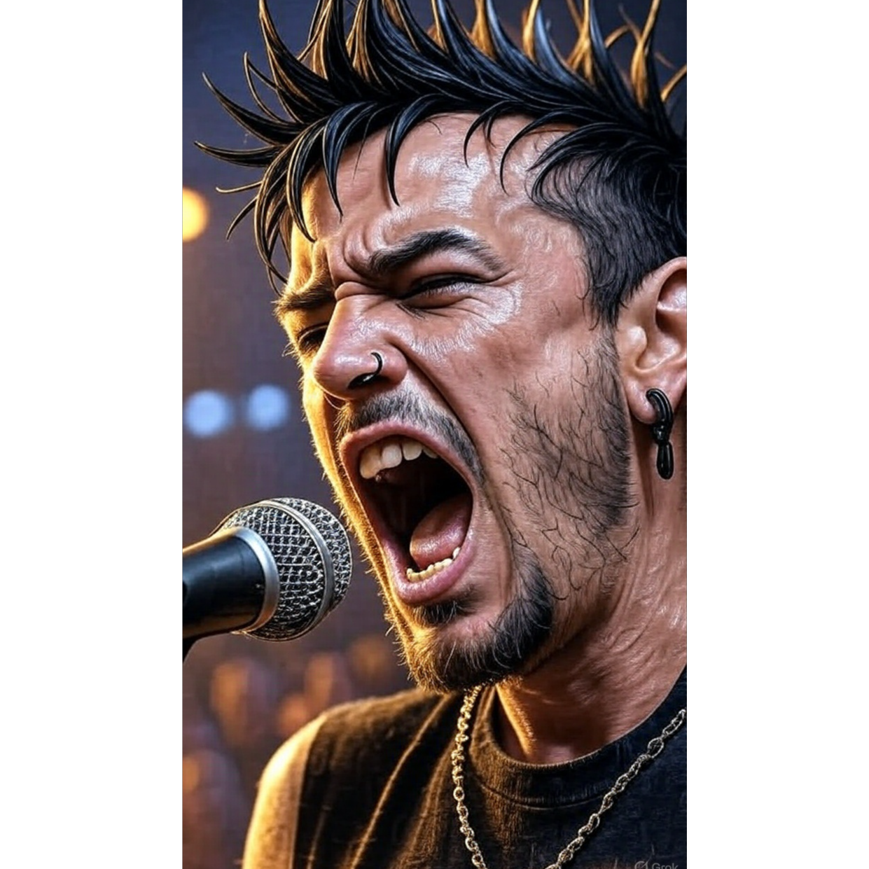male, Ultra-fast, hyper-aggressive, high-gain punk rock track (Rocket to Russia era), Must use a brutally repetitive, simple three-chord structure (I-IV-V), Feature heavily distorted, crushing rhythm guitar with constant palm-muting, Bassline is simple and prominent in the mix, Drumming is rapid-fire, four-on-the-floor beat with aggressive tom-tom fills, Melodic, urgent vocals delivered with raw, shouted aggression, supported by powerful 'gang vocals' (Hey! Ho!) in the chorus, Production should be raw, loud, and heavily compressed, delivering the punch of East Coast Hardcore Punk
