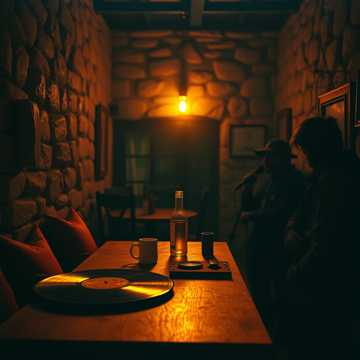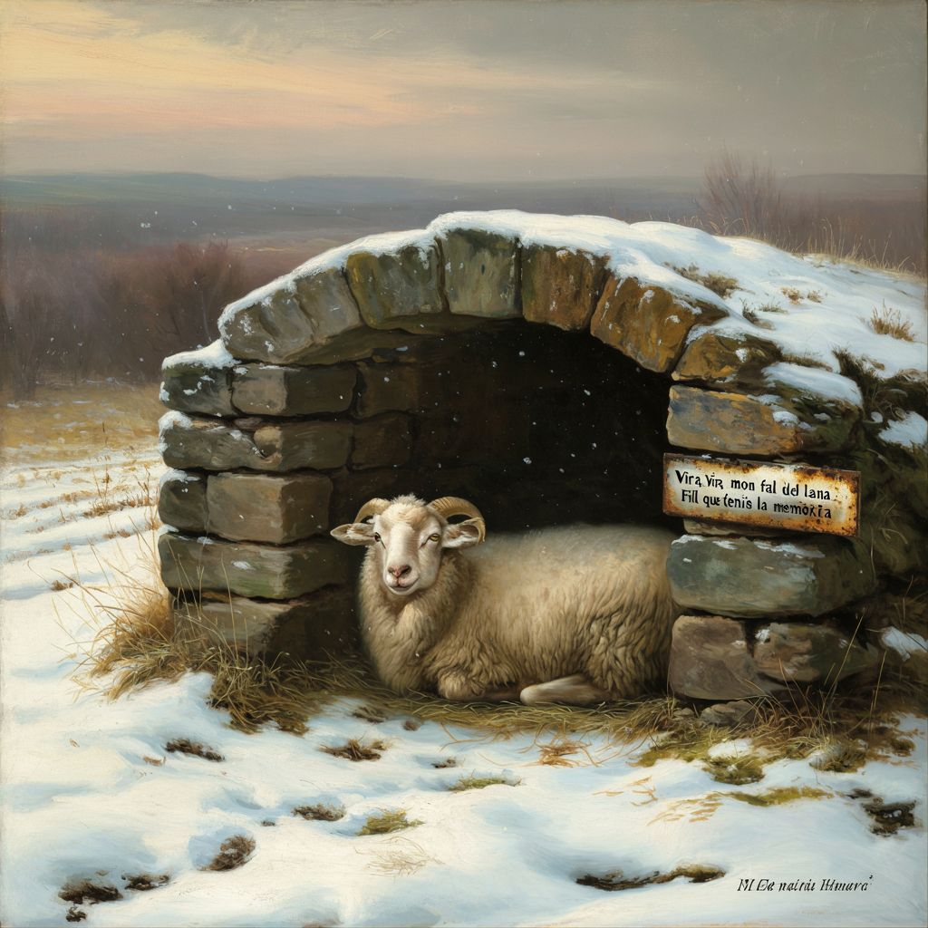 Latin hip-hop instrumental inspired by 90s Chicano rap, emotional and dramatic Spanish guitar, haunting live trumpet, deep boom bap drums, dark cinematic atmosphere, nostalgic but apocalyptic mood, vinyl texture, minor key, slow cruising lowrider feel, 90 BPM, melancholic, poetic, dramatic build, warm analog sound, expressive trumpet with long reverb tails, Mood: tragic, reflective, end-of-era poetry, urban requiem with fragile hope in the bridge, le chanteur traditionnel chante en patois transalpin, veillée familiale, transmission du patrimoine culturel
