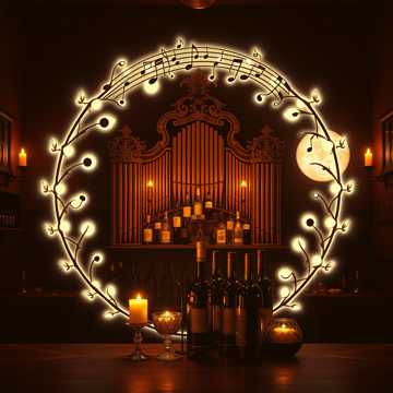 Full symphonic orchestra, strings, brass, woodwinds, timpani, harp