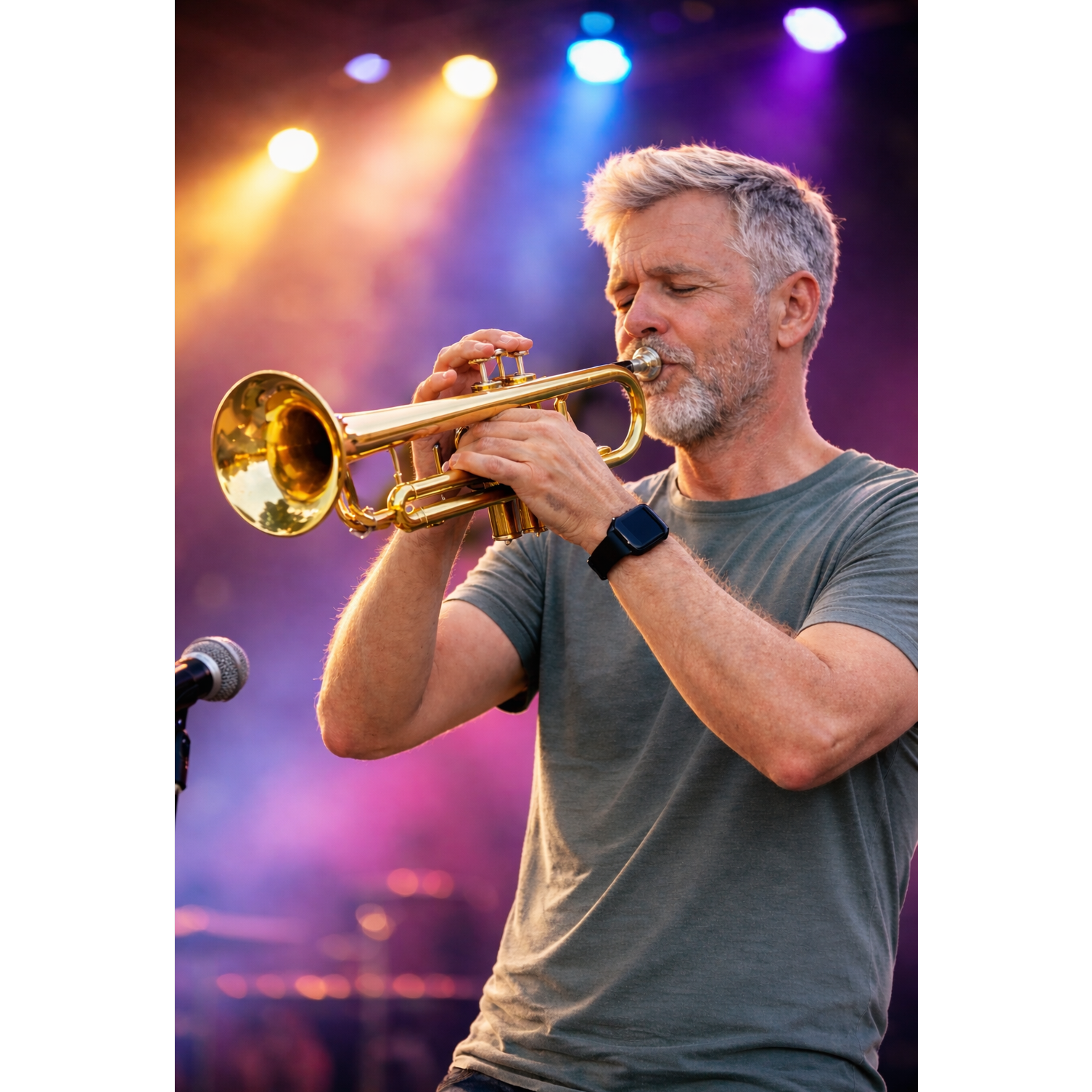 smooth trumpet lead with warm flugelhorn tone, instrumental, no vocals, rich brass arrangement, warm analog mix