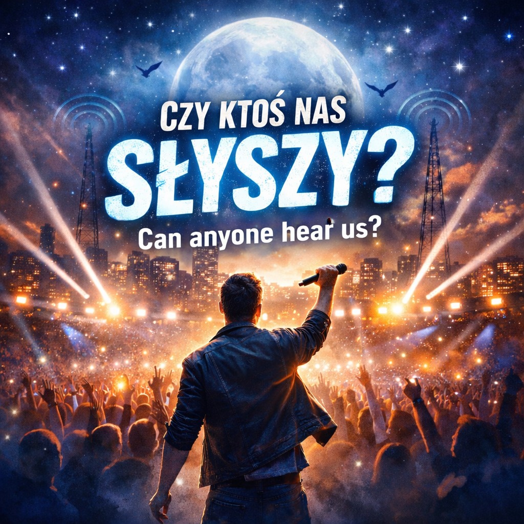 Energetic Polish stadium pop-rock anthem, emotional male vocal, big uplifting chorus, electric guitars, driving drums, modern production, crowd chant in chorus, cinematic build-up, powerful bridge, radio-ready hit, 125 BPM, Male vocal, low-mid range, warm baritone