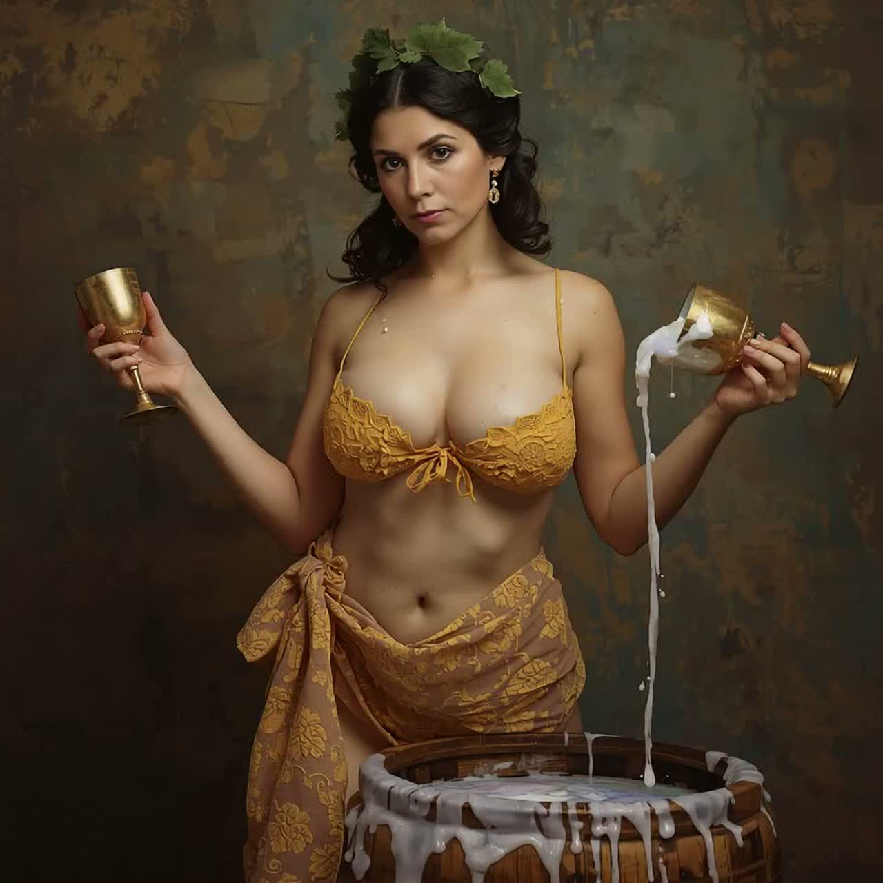 Texture: grape stomping, wine splash, cork pop, milk squirt, crowd roar