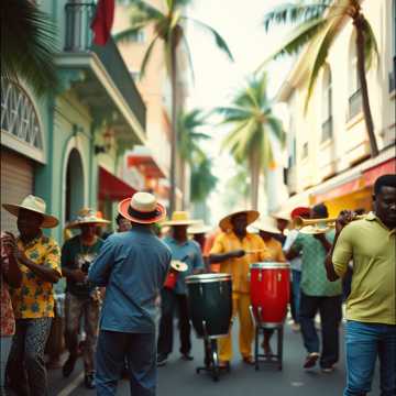 Latin pop rock fusion, Caribbean rhythms, Colombian coast rock, danceable pop rock, acoustic guitar, percussion-driven, tropical rock fusion, upbeat catchy melody, bilingual vocals, world music pop, 100-110 BPM, festive Latin rock, cross-cultural fusion, dance-pop elements