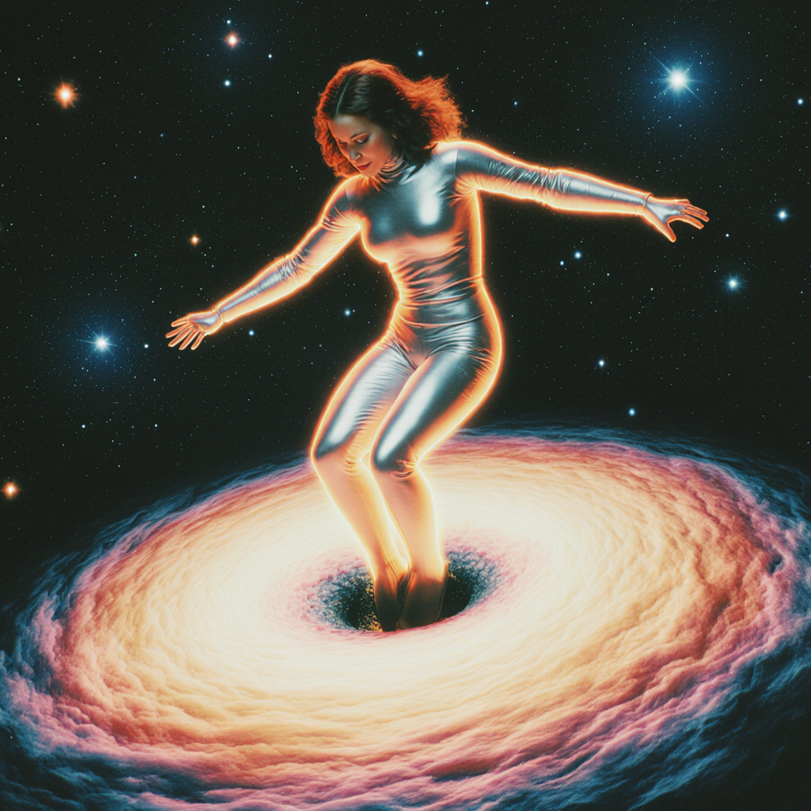 Cosmic disco-funk with retro-futuristic flair: Launch with syncopated bass and four-on-the-floor drums, interplaying with funky chicky guitar riffs, Lush analog string synth pads and swirling arpeggiated synths craft an “outer space” vibe, Echoed vocals with dramatic refrains and robot harmonies add a theatrical, hypnotic energy