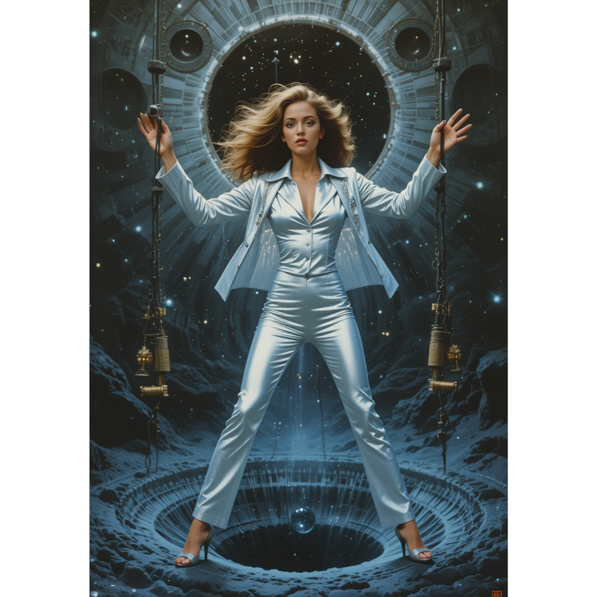 A 1970s space-disco track ignites with urgent analog synths, pulsating arpeggios, and a driving four-on-the-floor beat, Lively drum fills, handclaps, and snaps add energy, while lush string pads and choir synths provide grandeur, Laser FX, cosmic echoes, and subtle vocoder merge with bold Italian-accent vocals atop a glossy, futuristic mix