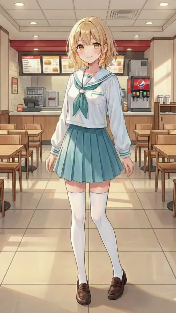 Create a full-length Kawaii Future Bass J-Pop track, approximately 3 to 4 minutes long, The track should feature a bright, playful, and energetic vibe with sweet and catchy melodies, Include electronic synths, plucks, soft pads, rhythmic chopped hi-hats, snappy drums, and sidechained bass for a lively groove, Structure the track for a complete song: intro, verse, pre-chorus, chorus, bridge, and final chorus, The emotional journey starts from a lonely night, transitioning to excitement as someone runs to McDonald's, then ending with happiness and satisfaction, Use sparkling FX, gentle risers, small build-ups, and vocal chops reminiscent of anime or chiptune style, Tempo around 130 BPM, major key, uplifting and heartwarming, The track should have clear dynamic variation between sections to support the story arc