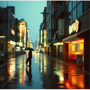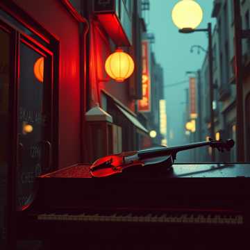 Nujabes-style ambient jazz hip hop instrumental, lush string pad and Rhodes chords and gentle boom bap and fender bass, rainy shibuya window view mood, lo-fi master with warm low-end and tape saturation, cinematic loop structure, 90 BPM