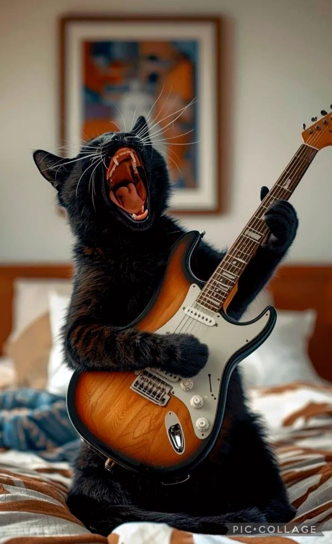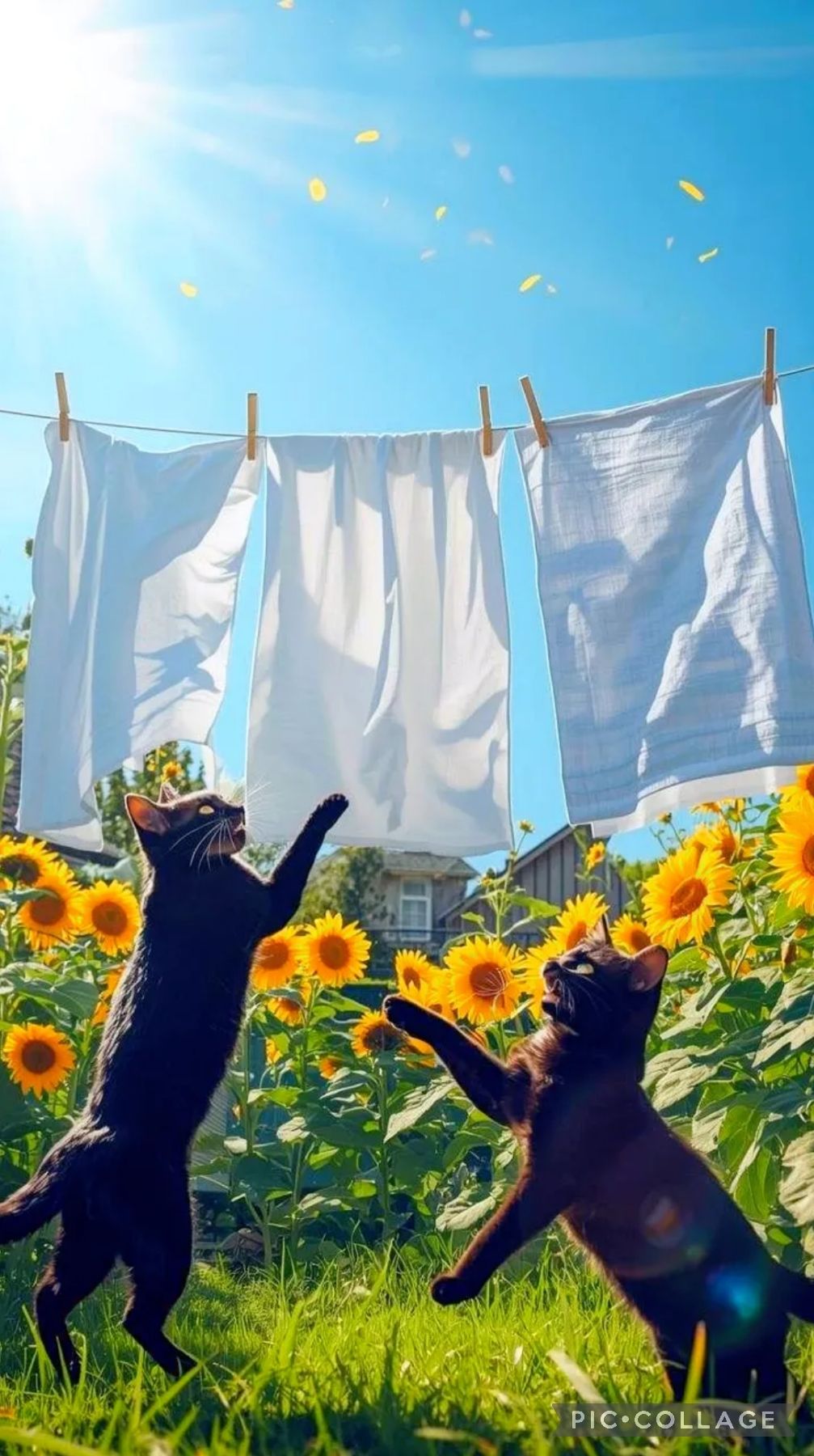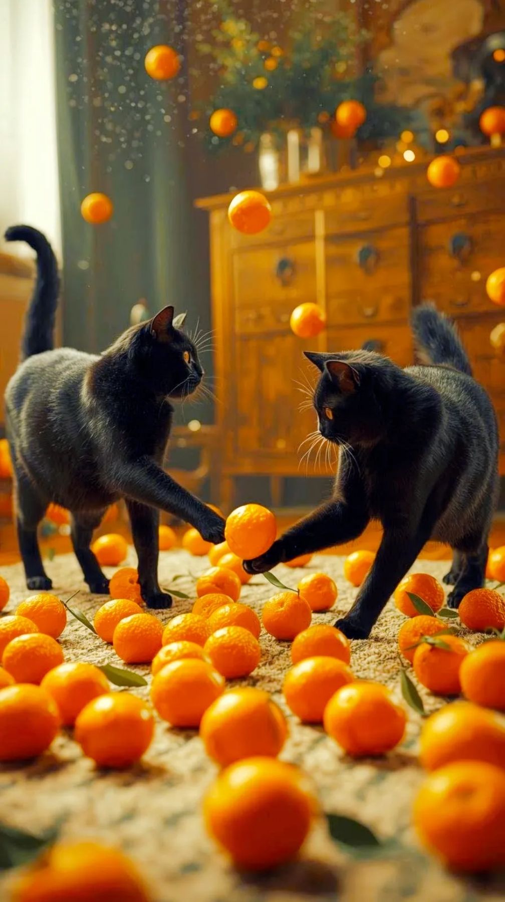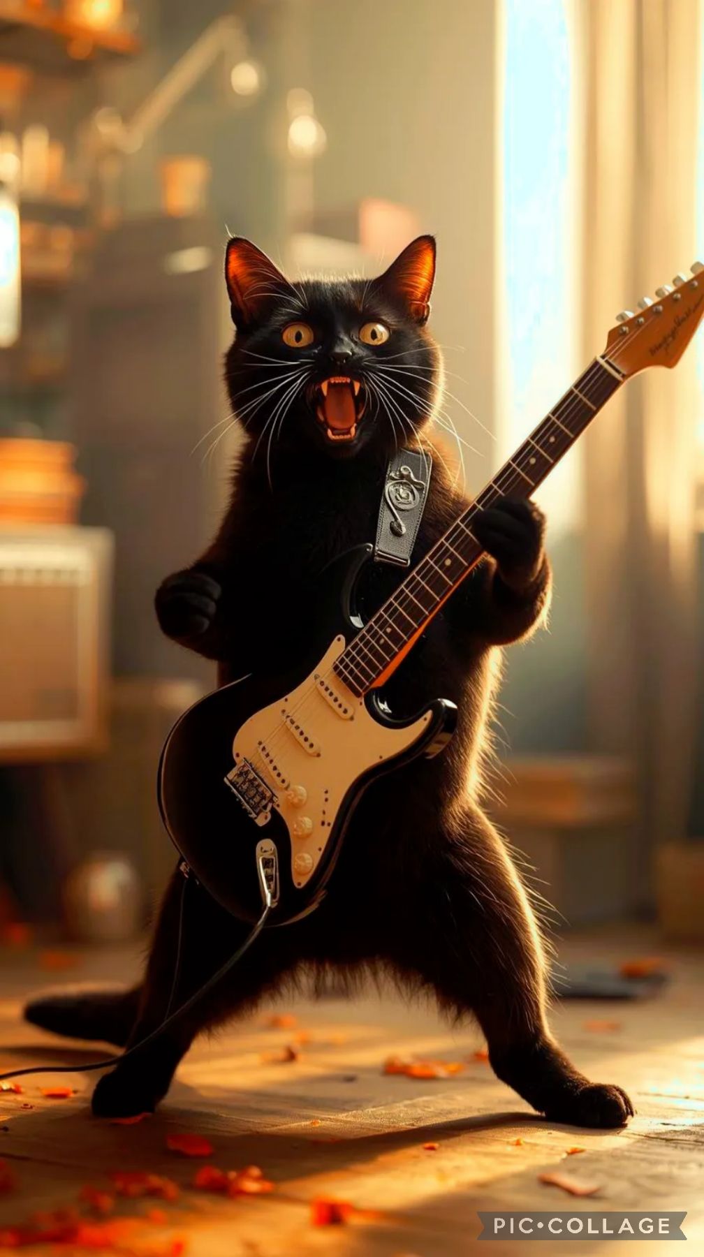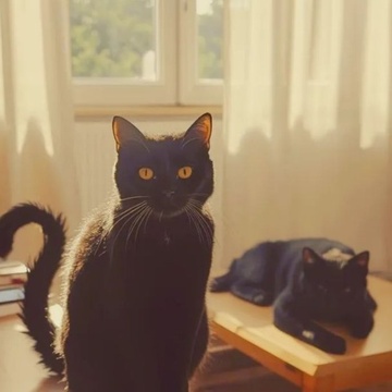 Bright acoustic J-pop with male vocals (SORA), brisk 4/4 groove led by strummed acoustic guitar and bouncy piano; verses stay light and chatty with playful percussion and claps, chorus opens into a wide, singalong feel with stacked “ooh” harmonies and warm bass; family-room ambience with occasional crowd-style shouts, ending on a gentle rubato tag and soft unison guitar-piano chord to spotlight the “two black cats bring good fortune” line