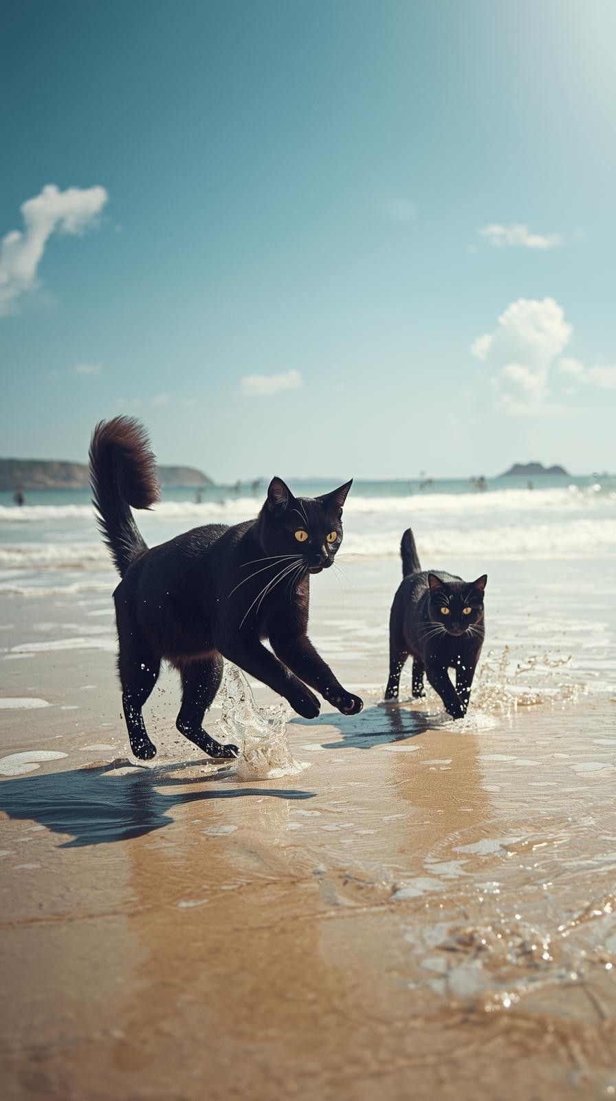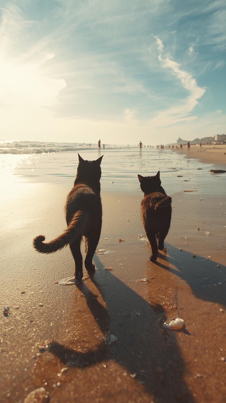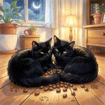 Gentle Japanese pop ballad, slow tempo, Male vocals, breathy and tender, sit over intimate piano and soft acoustic guitar arpeggios, Verse 1 stays sparse with close-miked vocal and subtle guitar swells; Verse 2 adds warmer piano voicings and light guitar harmonics, Chorus blossoms as soft strings enter, widening the stereo field with warm pads and counter-melodies while keeping the dynamic restrained and soothing, Light brushed percussion enters only in the later choruses, heartbeat-like, underscoring the emotional bond of the two cats and the tranquil seaside night