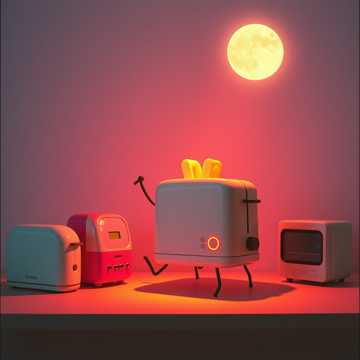 A surrealist, genre-blending electronic track where vocals are in Luxembourgish throughout the song, The same chorus repeats in five different fusion sections: happy hardcore combined with reggae rhythms and rave synths; hard trance fused with folk instruments like fiddle and pan flute; hardstyle mashed with polka brass and accordion; psytrance with Mongolian throat singing and spectral effects; and eurodance merged with smooth jazz piano and spoken MC verses, The vocals express surreal, neurodivergent nonsense centered around dancing with a toaster on Tuesday night, folding time, and absurd mental images, Playful, theatrical, rhythmic chaos with BPM shifts and colorful textures
