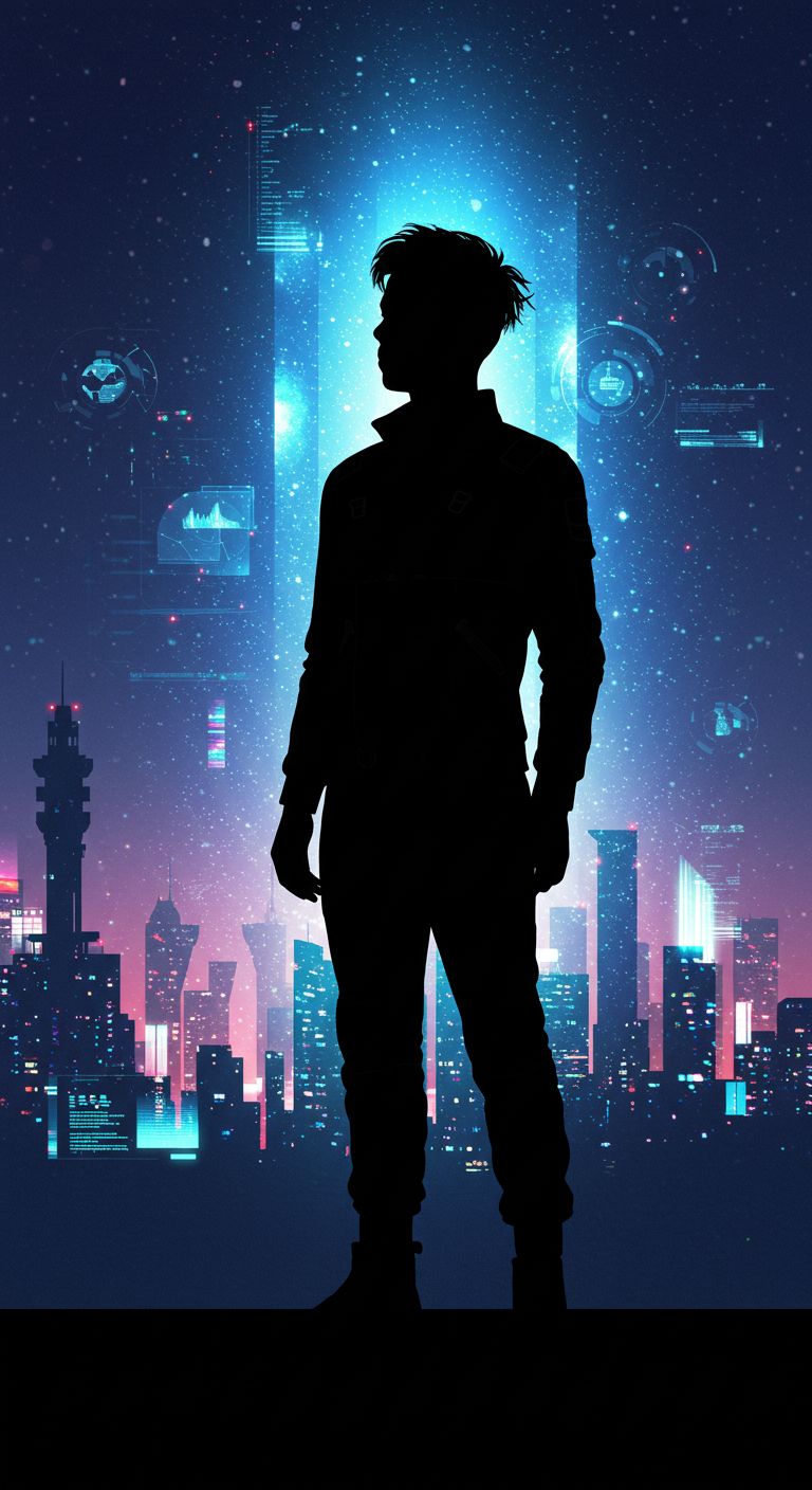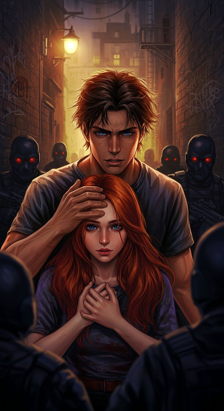 Theme: Android warriors, high-tech shadows, survival in a dystopian city