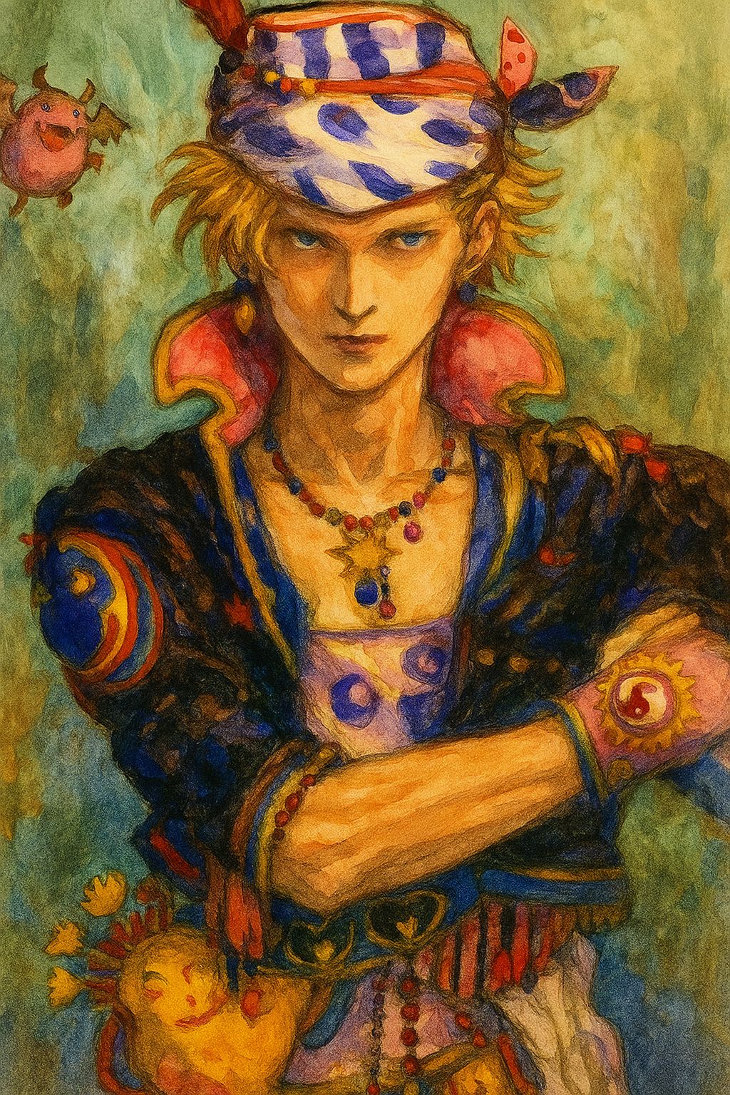 one with a higher, ethereal register, the other with a deeper, resonant voice, The arrangement blends electric guitar, flute, and synthesizers, weaving together a soundscape that moves from ominous darkness to shimmering transcendence