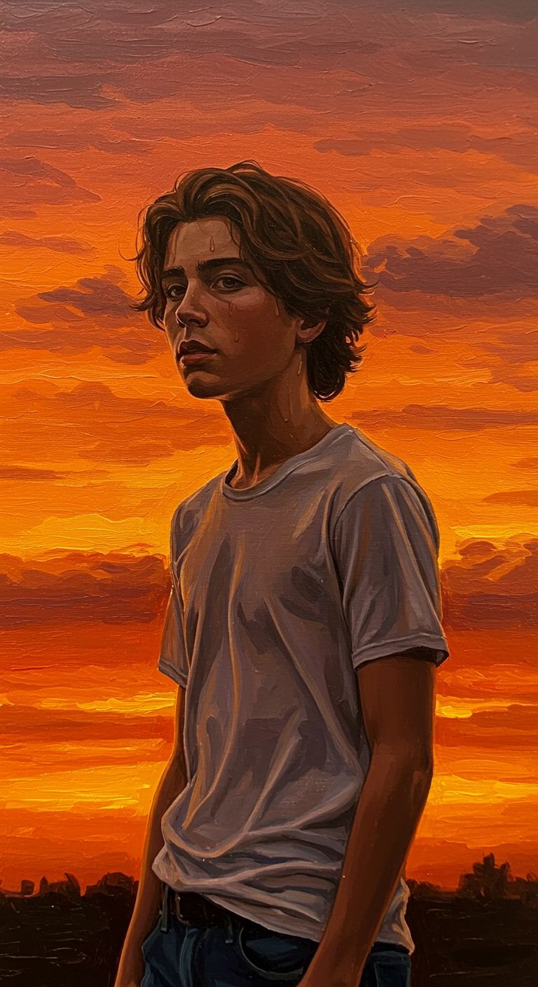Atmosphere: Melancholic, dramatic, with a touch of cinematic glamour — like a coming-of-age film under neon lights