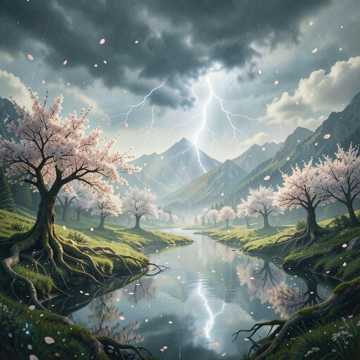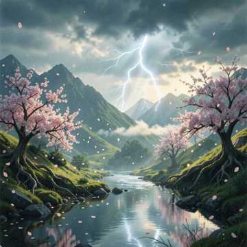 Deep earth‑tone minimalism, Shimmering string ensemble with low, resonant Cello like shifting tectonic plates, A lonely, breath‑breathing Shakuhachi echoing through forest canopies, Koto arpeggios like falling petals and trembling branches, Minimalist piano like water dripping in a cavern, Atmospheric synth pads shaped like white‑blown sky and shadow pillars, Cinematic, high‑fidelity, solemn, sacred, and vast