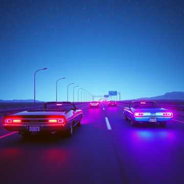 Italo body music, retro, driving 80s beats, energetic and fast-paced, pulsating basslines, soaring synth melodies, neon-drenched atmosphere, cinematic and nostalgic, high-octane vibes