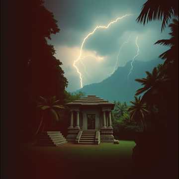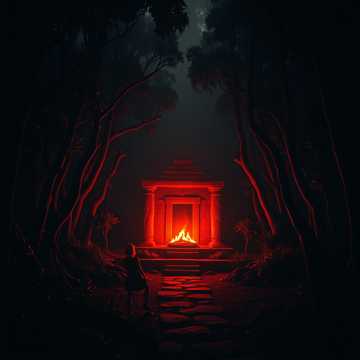 Steady tribal march beat, jungle tension, whispered Blood God threats